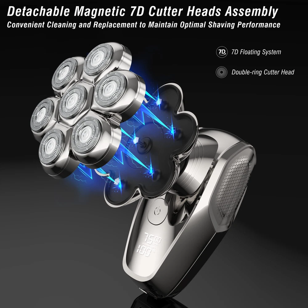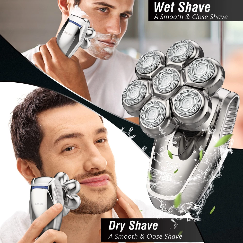 Replacement Shaving Heads for AF-809 Series Electric Rotary Shavers,Electric Razor Replacement Heads Assembly Easy to Replace and Clean Compatibility: This replacement heads assembly specifically ONLY for the brand AF-809 series electric rotary shavers; Note: This replacement heads cannot be used with other brands of electric shavers Double-track Cutter Net Design: The High-performance 3D floating cutter heads with double-track ultra thin cutter net and self-sharpening steel blades design, gives you a comfortable and close shaving experience at any time High Quality Materials: Produced from precision stainless steel, fine cutting and easy capturing Easy to use : This replacement heads assembly is easy to replace and whole body washable for easy cleaning Recommendation: For maximum shaving performance, it is recommended to replace your shaving unit once every 12 months Please note: 1. After replacing the shaving heads, please ensure that the shaving head assembly and the shaver body are fully riveted to avoid damage to the shaving heads. 2. If you find that the shaving head is damaged, please stop using it and replace it with a new one. [ A Smooth and Close Shave ] - Electric 7D rotary head shaver with independent 7 floating heads follows every contours of your head and face, even on the neck and jaw line, giving you a comfortable and gentle shaving experience [ Waterproof and Wet & Dry Shave ] - electric bald head shavers is 100% waterproof and whole body washable, you can shave dry or wet even in the shower. For a more comfortable shaving experience we recommend that you use foam or gels when shaving. For efficient cleaning after each shaving please rinse the shaver heads under the tap [ Type-C Fast Charging ] - Use a universal USB Type-C cable to charge the men's head shaver, Convenient for you to charge your shaver anytime, anywhere. It can provide up to 90 minutes shaving time with 1.5 hours fully charged [ LCD Display and Travel lock ] - The smart LED display indicates current motor speed, battery level and charging status. Keeps you informed of the currently available shaving time and reminds you to recharge the shaver in time when the battery is running low. [ Powerful and Efficient ] - The latest upgraded motor provides more power and support optional 2 speeds (7000/7500RPM), combined with 7 independent shaving heads can greatly improve shaving efficiency, so that you can shave your head and face smoothly and efficiently, saving you time