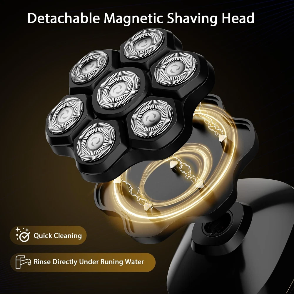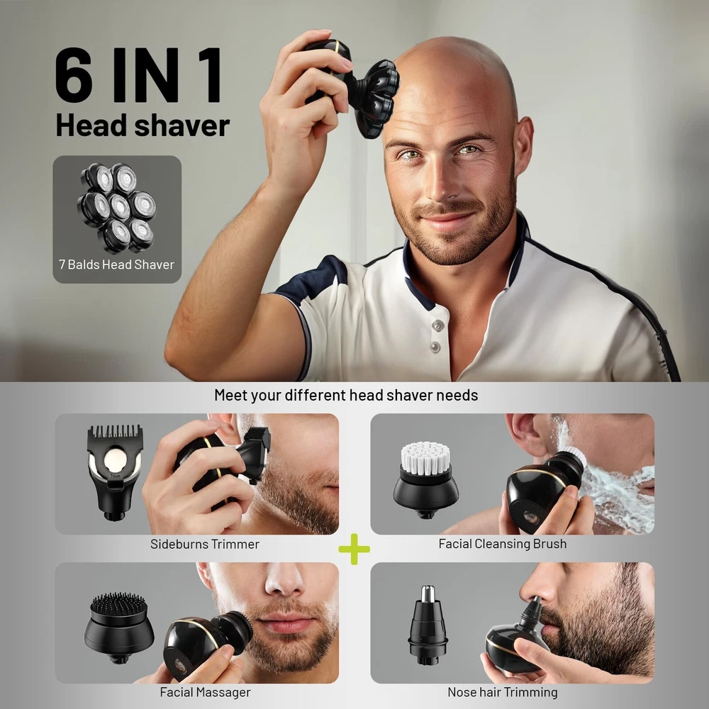 Head Shavers, Upgrade 6-in-1 Electric Head Shavers for Bald Men, Wet/Dry LED Display Rechargeable 7D Rotary Shaver Grooming Kit with Type-C Charge, Black Product Details Color: Black Brand: SHPAVVER MPN: 1 UPC: 796520879751 EAN: 0796520879751 Brand: SHPAVVER Recommended Uses For Product: Scalp, Face Special Feature: Rechargeable, Dry Shave, Wet, Floating Head, Portable, Waterproof, Detachable Head, Ergonomic Design Power Source: Battery Powered Model Name: SHPAVVER Upgrade 7D 6-in-1 Electric Head Shaver Product Dimensions : 0.4 x 0.4 x 0.4 inches; 14.89 ounces Item model number : 1 Date First Available : March 6, 2024 Manufacturer : SHPAVVER Advanced Detachable Shaving Head: Our head shaver is crafted for men who prefer a bald, clean-shaven look but are weary of the hassle that comes with razors and blades. The new upgraded detachable design makes this head shaver incredibly easy to clean. Simply detach the entire blade, wash under water, and store conveniently. Maintain your head shaver in peak condition by regularly cleaning out trapped hairs Efficient & Gentle 7D Floating Head Shaver: Take advantage of our head shaver's ultra-flexible 7D pivoting blade design that enlarges the shaving area and reduces the time you spend shaving. This head shaver for men offers 7D precision and rounded edges that glide effortlessly over the skin. Experience a smooth and close shave with greater comfort and efficiency Versatile Wet & Dry Shaving Experience: Equipped with IPX6 waterproof technology, our head shaver for bald men caters to both wet and dry shaving needs. Use foam or water for a comfortable shaving experience. This electric head shaver allows you to complete your grooming tasks effortlessly, even while showering Fast Type-C Charging & Intelligent LED Display: This head shaver for men offers a robust 100 minutes of shaving time after just 1.5 hours of fast charging. Stay informed about your power levels with the LED display, ensuring you never run out of charge. Use various charging options like laptops, cars, and power banks to keep your head shaver ready for action, whether you're at home or on the go 6-IN-1 Comprehensive Razor Head Set: Our head shaver for bald men is a powerful, multifunctional grooming tool equipped with 6 shaving heads: smooth texture, hair trimmer, hair trimmer combs(3/5/7mm), nose hair trimmer, massage brush, and cleaning brush. This head shaver for men can meet all your daily grooming needs and is also the perfect birthday and holiday gift idea for your husband Satisfactory Service : If you receive the wrong product or defective product or are unhappy with its use, please feel free to contact us