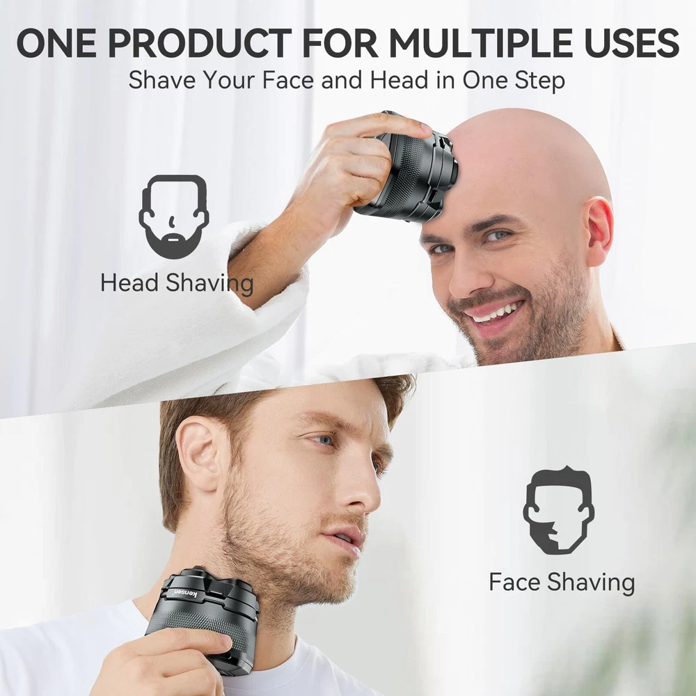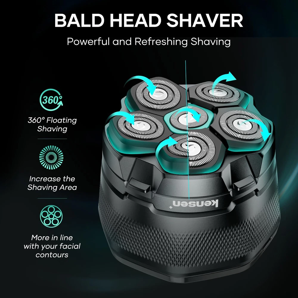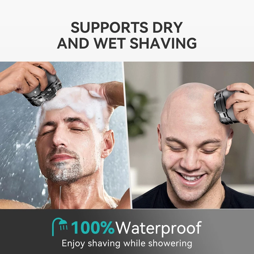 【Wet/Dry Use & 100% Waterproof】head shaver for bald men is designed with IPX6 waterproof technology, making it perfect for both dry shaving on the go or a refreshing wet shave in the shower. Whether you're in a rush or enjoying a relaxing grooming session, this skull shaver for men adapts to your lifestyle, providing a comfortable and efficient shave every time. 【160 Minutes of Power with LED Display】No more mid-shave battery worries. With just 2 hours of USB-C charging, the electric head shaver delivers up to 160 minutes of continuous power. The LED display keeps you informed of the battery level, ensuring you're never caught off guard. Perfect for busy mornings, travel, or back-to-back shaves, this bald head shaver is built to keep up with your schedule. 【Magnetic Shaver Head for Quick Cleaning】Struggling with clogged blades and tedious cleaning routines? The skull shaver features a magnetic head that detaches effortlessly, making cleaning quick and hassle-free. The enlarged compartment also means fewer cleanings between uses, giving you more time for what really matters. This electric head shaver for men simplifies maintenance, so you can enjoy a smooth, clean shave without the fuss. 【6D Rotary Shaver with Dual Blades】Achieving a close shave shouldn't mean irritating your skin. balder boss cordless head shaver boasts 6D rotary floating heads and dual-layer blades that contour to your scalp and face, providing a close, irritation-free shave. Whether you're dealing with thick, coarse hair or sensitive skin, this head razor ensures a gentle yet effective shave, leaving your skin smooth and comfortable. 【Reliable Customer Support】is committed to delivering high-quality electric clippers for men and top-notch customer service. If you encounter any issues or have questions, our team is ready to assist you promptly. With , you're not just buying a bald head shaver; you're investing in a reliable grooming solution backed by exceptional support.