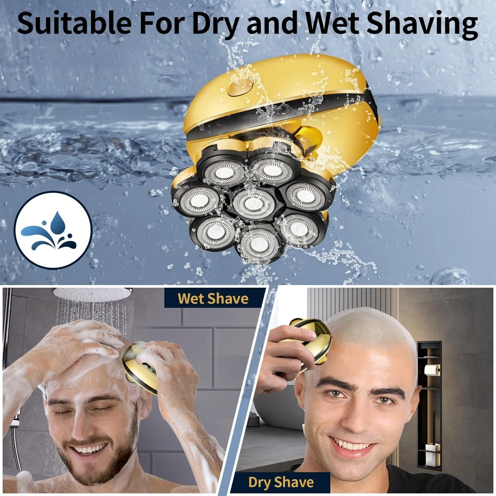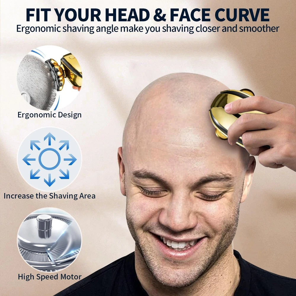 Head Shavers for Bald Men Electric Razor for Men's Head and Face Professional Mens Razors Rotary Head Shavers Rechargeable 8D Rotary Shaver Grooming Kit with Type-C Charge Product Details Brand: VOTMONI Recommended Uses For Product: Scalp Special Feature: Waterproof, Dry Shave, Wet, Lighted, Ergonomic Design Power Source: Corded Electric Included Components: Cleaning Brush Package Dimensions : 8.2 x 3.9 x 3.1 inches; 1.26 Pounds Item model number : LD-108804 Batteries : 1 Lithium Ion batteries required. (included) Date First Available : December 19, 2023 Manufacturer : VOTMONI Country of Origin : China Double Precision Shaving Head Blade: Our bald men's shavers use double-layer durable titanium blades, with sharp edges that can accurately capture long and short hair. The 360 floating blade can better fit the contour of the head, effectively and accurately shaving while reducing friction and irritation to the skin, better protecting your skin. In addition, dual track precision magnetic heads can achieve cleaner and smoother magnetic heads in a short period of time. All in One Grooming Set: This bald head shaver has 6 detachable attachments, including 8D floating head, sideburns trimmer, facial cleaning brush, nose & ear trimmer, facial cleansing brush, soft facial sponge, this detachable attachment can satisfy your head shaving and facial care needs such as trimming and combing facial hair, trimming nose hair, smoothing stubble, cleaning the face, shaving beard, body hair, etc. USB Fast Charging & LED Intelligent Display:The head shaver is equipped with a large capacity battery and USB cable, which can be quickly charged for 2 hours and used cordless for 90 minutes, allowing you to pick up the shaver even if you forget to charge it. And the shaver is equipped with an intelligent display screen, that is, the battery percentage can be displayed, so you can decide when to charge your shaver after using. Waterproof Wet & Dry Electric Shaver: The electric shaver adopts upgraded waterproof technology, so you can not only have comfortable dry shaving, but also wet shaving with foam, and even shave in the shower. The waterproof design throughout the body allows you to clean men's shavers under tap water, paired with the provided small brush, making the cleaning process simple and convenient. Perfect After-Sale Service: If you like it, please rest assured to add it to your shopping cart! We will provide perfect after-sales service for every customer. If you have any questions, please feel free to contact us and we will provide you with the best solution within 24 hours timely. Give us trust and give you a perfect shopping experience! Multifunctional Mens Electric Shaver The bald head shaver is comfortable and nearly smooth for bald men with no dead ends in shaving. It provides six sets of independent floating shaving heads, which are are more efficient than regular double headed razors. The blades of this men's shaver feature a new automatic sharpening function. This electric shaver has a smooth touch for balding, elastic fit, and adapts to different facial contours for a smooth and comfortable experience. Package Content: 1Electric razor 1Nose & ear trimmer 1Hair clippers head 1Soft facial massage brush 1Facial cleaning brush 1Cleaning brush 1USB charger 1Head protective cover 2Replacement shaver head 3Limit combs(3mm/5mm/7mm) Specifications: 1.Charging Time: 2 hours 2.Working Time: 90 mins 3.Battery: Lithium 4.Type-C Charging