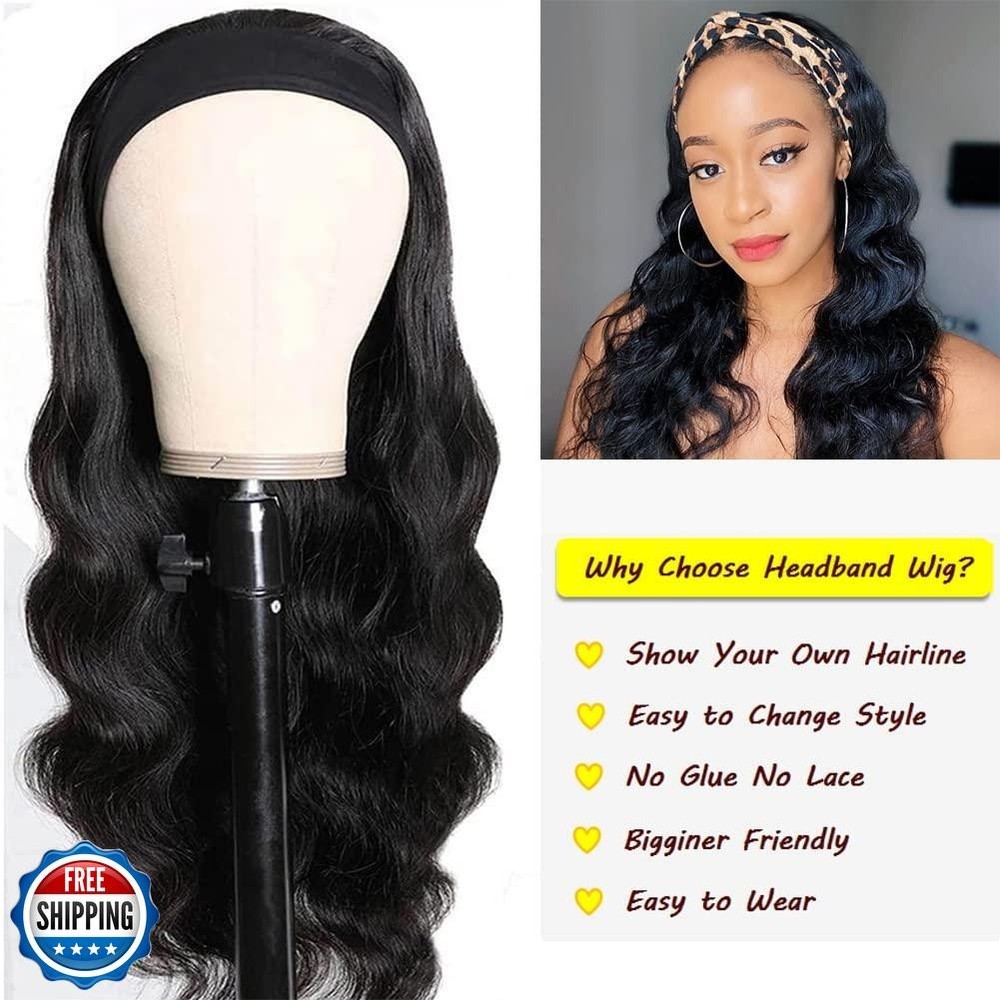 Headband Wigs for Black Women Human Hair Glueless Body Wave Headband Wig Human Hair 100% Brazilian Virgin Hair Machine Made Head band Wig 150% Density Features Headband Wig Human Hair Material : 100% unprocessed 10A grade Brazilian human hair headband wig, can be dyed, bleached, curled, straightened and restyled as you like! Silky, soft, tangle free, shed free, no weird smells. Head band Wigs Feature: No glue velcro buckle design, easy to install and show your natural hairline. Easy to make ponytails or buns to make your wig more realistic. Head band Wig Cap: medium cap size (22-22.5 inches); Velcro snap design with adjustable shoulder strap; easy to wear and adjust; comfortable and natural back elastic net. package and gifts: 1 body wave headband wigs for black women human hair + 1 random color headband + A pair of sexy mink eyelashes + 1 wig cap; Suit for Occasions:You can wear different headband on ur wig to match your make up and dress up, Including going to party, working place, school, or any public place, It can be used for a long time and repeatedly. Shipping Free & Fast Shipping: We offer free shipping to most of the USA with a normal delivery time of 3-7 days. However, due to the current situation, additional delivery time (up to 3 weeks) may be required for some items. Alternative Carriers: We may use alternative carriers (e.g., USPS, FedEx, UPS) to ensure your package arrives safely and on time. Due to the use of multiple carriers, we are unable to provide a tracking number automatically. Handling Time: Orders are processed and shipped within 1-2 business days of receiving cleared payment. Shipping Restrictions: Shipping to Alaska, Hawaii, Puerto Rico, Guam, and other US territories may incur shipping charges or delivery restrictions. Please contact us before ordering, or your order can be refunded/cancelled. State Restrictions: Certain items may not be shipped to California due to state regulations. Contact for Tracking Updates: If you require tracking updates or have any concerns about the delivery of your order, please feel free to contact us, and we will be happy to assist you. Return Policy 30-Day Hassle-Free Returns: If you are not completely satisfied with your purchase, you can return the item for free within 30 days of receiving it for a full refund or exchange. Easy Return Process: Contact us, and we will provide you with a prepaid return shipping label and detailed instructions. No Restocking Fee: There are no restocking fees for returns. However, the buyer is responsible for return shipping costs if the return is not due to a seller"s error. Refund Processing: Refunds will be processed within 1 business day of receiving the returned item in its original condition. Feedback Your feedback is extremely important to us. We strive to provide the best products and customer service possible. If you are satisfied with your purchase, please take a moment to leave us a positive review. If you have any concerns or issues with your order, please contact us before leaving negative feedback. We are committed to resolving any problems and ensuring your satisfaction. Contact Us If you have any questions or concerns, please feel free to reach out to our customer support team. You can contact us through the eBay messaging system. We are available Monday to Friday, 9:00 am to 5:00 pm EST, and we will do our best to respond to your inquiry within 24 hours. Thank you for supporting our small family business!