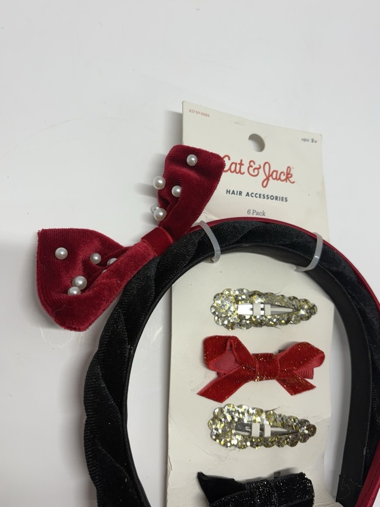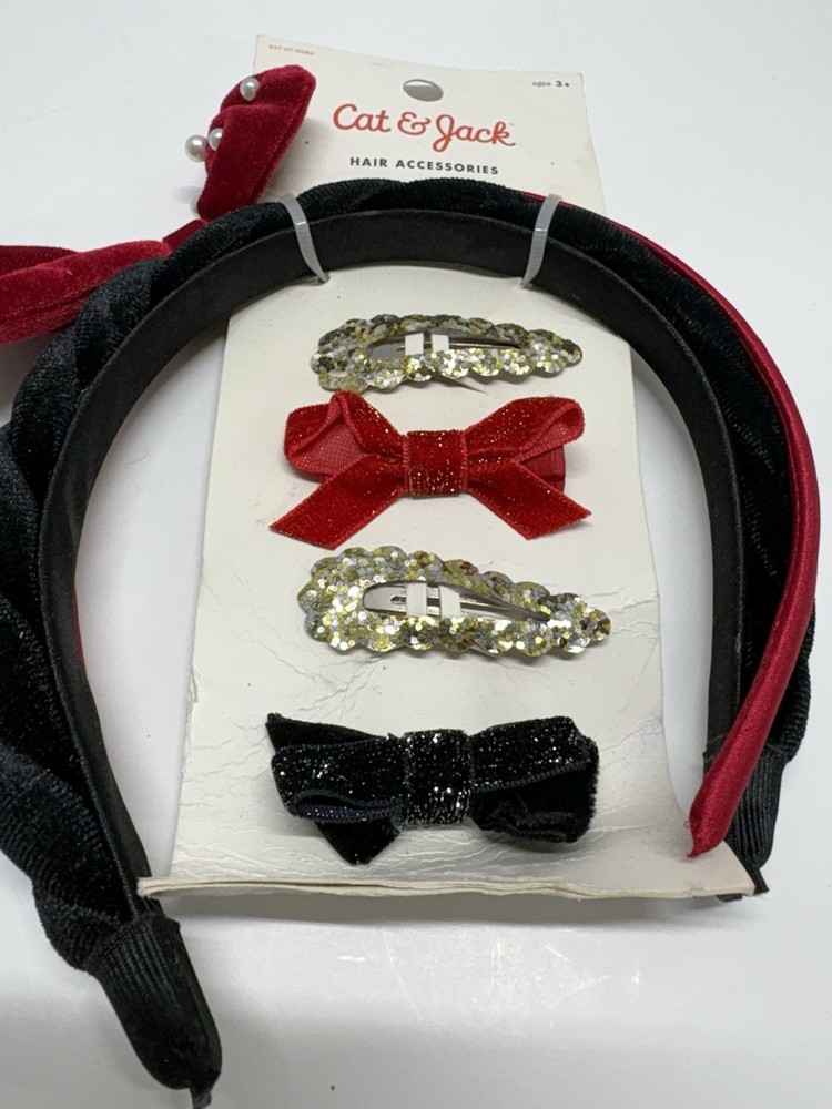 The Cat & Jack Headband/Bows Holiday Hair Set is a festive accessory designed for girls. This multicolor set includes a headband with a cute bow accent, perfect for adding a touch of holiday cheer to any outfit. The set is ideal for young girls looking to add a fun and stylish element to their hair during the festive season.