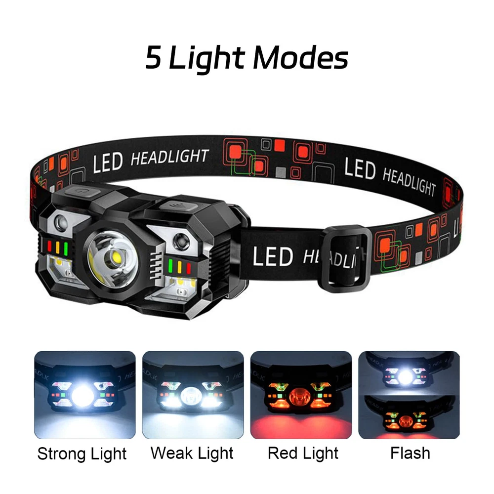 Headlamp Rechargeable - Experience a powerful hands-free LED camping light that produces a bright long-lasting beam with daylight color and clarity that runs for up to 4-10 hours at low Settings making it the perfect working headlamp Adjustable Comfort - The detachable, washable, and adjustable headband in this headlamps led rechargeable ensures a comfortable fit for everyone With the battery it weighs just 2 ounces making it the perfect headlight for outdoor explorers Versatile design - Our premium headlights have 30-degree adjustable headlamp that direct light exactly where you need it 5 different lighting modes are available from white flash to red beam to ensure safety As a running headlight it works well Weatherability - Waterproof and shock-proof the headlights for forehead is suitable for rain and snow weather indoor or outdoor use List of essential accessories for running hiking and camping Perfect Gift Choice - Are you still struggling with gift headlamp is your answer This headlamp will be the perfect gift for your father mother husband boyfriend on Christmas Father's Day Valentine's Day Easter Halloween and Thanksgiving