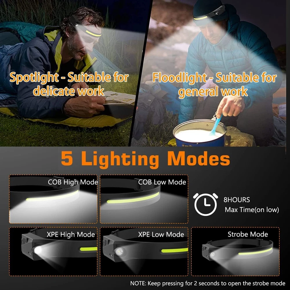 Delfi Strip Lamp Pro, 230° Wide Beam Led Everlyte Headlamp Flashlight with All Perspectives Induction, Headband Light, Motion Sensor, Lightweight, Camping Head Light for Outdoor Running Special Feature Easy To Use,Lightweight Color Black Power Source Battery Powered Light Source Type LED Material Silicone Rubber About this item 5 Lighting Modes LED Headlamp: This lightweight led headlamp is easy to use, short press the button to easily switch between COB high/COB low/LED XPE high/LED XPE low mode/off. Long press on/key to switch the strobe mode, at this time LED and COB light Flashes at the same time. 230° Wide Angle Lighting & 350Lumen: This rechargeable wide beam headlamp provides 230° wide-angle lighting. You can get a wide range of lighting coverage without moving your head. The super bright LED XPE light on the side can provide a lighting distance of about 150 feet. Motion Sensor Mode: Unlike other head lamp on the market, our Wide beam headlamp are equipped with the latest upgraded smart sensors, which can easily control the on/off of the striped LED lights with a wave of hands, avoiding tedious operations, saving you time, and allowing you to focus on your work. Rechargeable Battery: 230 led headlamp Built-in 1200mAh high-capacity lithium polymer battery, with a micro USB charging cable, Type-C USB input interface, suitable for multiple charging methods, fast charging, can adapt to rain and other bad weather. Lightweight Portable & Comfortable: Head lamp weighing only 3.4oz makes this running headlamp very light and easy to carry. Adjustable headband makes this water-proof headlamp suitable for long-time wearing. Easily adjusts to hard hats and helmets. Suitable for sports, night running, camping, fishing, car repairing. (Item does not ship to Miami&Doral, FL), have any problem please contact us !
