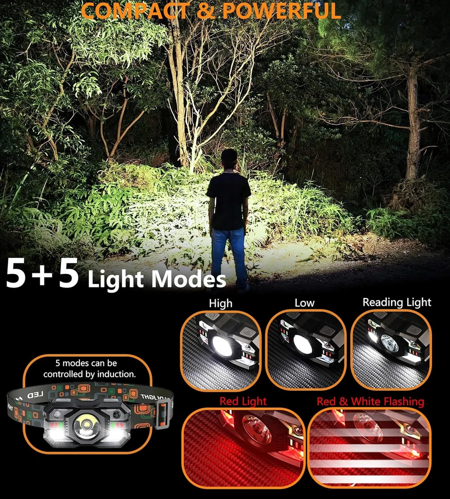 Headlamp Rechargeable,1200 Lumen Ultra Bright LED Head Lamp Flashlight 1 Pack Product Details Special Feature: Adjustable Light Modes, Motion Sensor Color: 1 Pack Power Source: Battery Powered Light Source Type: LED Material: Plastic Included Components: Usb Cable Product Dimensions: 1"D x 0.5"W x 0.5"H Battery Cell Composition: Alkaline Item Weight: 2.8 Ounces Number of Batteries: 1 AAA batteries required. (included) Water Resistance Level: Waterproof Brand: Skylla Brightness: 1200 Lumen Runtime: 3 hours Manufacturer: SKYLLA Part Number: Z1009 Item Weight: 2.8 ounces Country of Origin: China Item model number: Z1009 Batteries: 1 AAA batteries required. (included) Item Package Quantity: 1 Special Features: Adjustable Light Modes, Motion Sensor Batteries Included?: Yes Batteries Required?: Yes Product Dimensions : 1 x 0.5 x 0.5 inches; 2.8 ounces Item model number : Z1009 Batteries : 1 AAA batteries required. (included) Manufacturer : SKYLLA Country of Origin : China Special Feature: Adjustable Light Modes, Motion Sensor Color: 1 Pack Power Source: Battery Powered Light Source Type: LED Material: Plastic HIGH BRIGHTNESS AND LONG RUNNING TIME: With a leading LED chip, the rechargeable LED headlamp offers up to 1200 lumens of light output and the IP65 waterproof design ensures that it works in any weather. Ideal for night running, cycling, camping, climbing, fishing, hiking and walking the dog. 10 LIGHT MODES, MOTION SENSOR: The multifunctional LED headlamp not only offers 10 different light modes (5 button modes and 5 motion sensor modes), but also a motion sensor that automatically switches between modes depending on what is needed. LED head lamp with white and red light for different usage scenarios. ANGLE ADJUSTABLE AND OPTIMIZATION FUNCTION: With a weight of only 2.8OZ and an adjustable lamp position, the headlamp is very comfortable to wear without putting pressure on the head and adapts to any head shape. TYPE-C FAST CHARGING, ECO-FRIENDLY AND CONVENIENT: With Type-C charging technology, the LED headlamp charges in just 2-3 hours, saving you money and energy. The headlamp is equipped with a power indicator to give you peace of mind when traveling. 【Widely Used】It is suitable for any situation, from working at night to reading, fishing, cycling and hiking. You can adjust the brightness as needed. Surprise your loved ones with this bright headlamp as a Valentine's Day Christmas gift, Father's Day, Halloween, Thanksgiving or Christmas gift. It is the ultimate gift for men, women, dad, mom, parents, boyfriend, son, neighbor or anyone who loves outdoor activities.