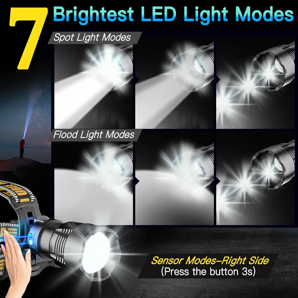FREE FAST SHIPPING SATISFACTION GUARANTEED LIFETIME WARRANTY 24/7 CUSTOMER SERVICE 🔥 120,000LM Rechargeable LED Headlamp – Super Bright & Built to Last! 🔥 ✅ Ultra-Bright 120,000LM LED – Lights up the darkest environments with an incredibly powerful beam, perfect for any adventure. ✅ Rechargeable & Long-Lasting – Built-in high-capacity battery with USB charging ensures extended use without constantly replacing batteries. ✅ Adjustable & Comfortable Fit – Flexible, lightweight headband with a 90° adjustable lamp for hands-free lighting at any angle. ✅ Lifetime Warranty – Buy with Confidence! – We stand behind our quality! If anything goes wrong, we’ll replace or refund your headlamp—no questions asked. Key Features: 120,000 lumens for extreme brightness 7 lighting modes for versatile use IP68 waterproof design for all-weather reliability Adjustable headband with a 90° rotating lamp Description: Take your adventures to the next level with this 120,000LM Rechargeable LED Headlamp , designed for camping, hiking, climbing, and emergency situations . Featuring 7 lighting modes , you can easily adjust brightness levels to match your needs. The IP68 waterproof rating ensures durability in rain, snow, and extreme conditions. With USB rechargeable convenience , you’ll never have to worry about running out of power. Adjustable, lightweight, and ultra-bright , this headlamp is built for comfort and performance. Backed by our Lifetime Warranty, this is the last headlamp you'll ever need!