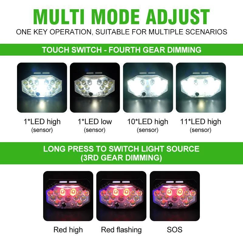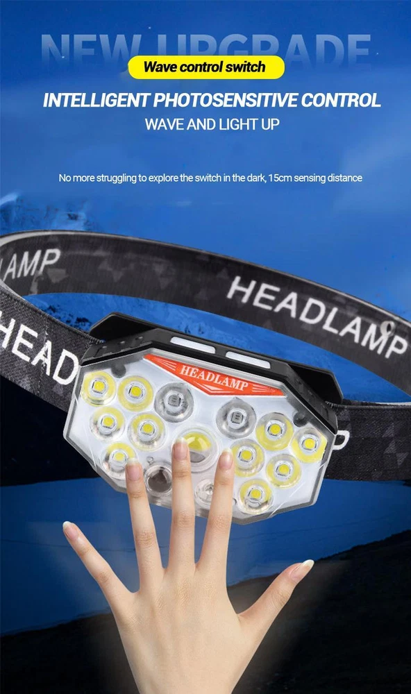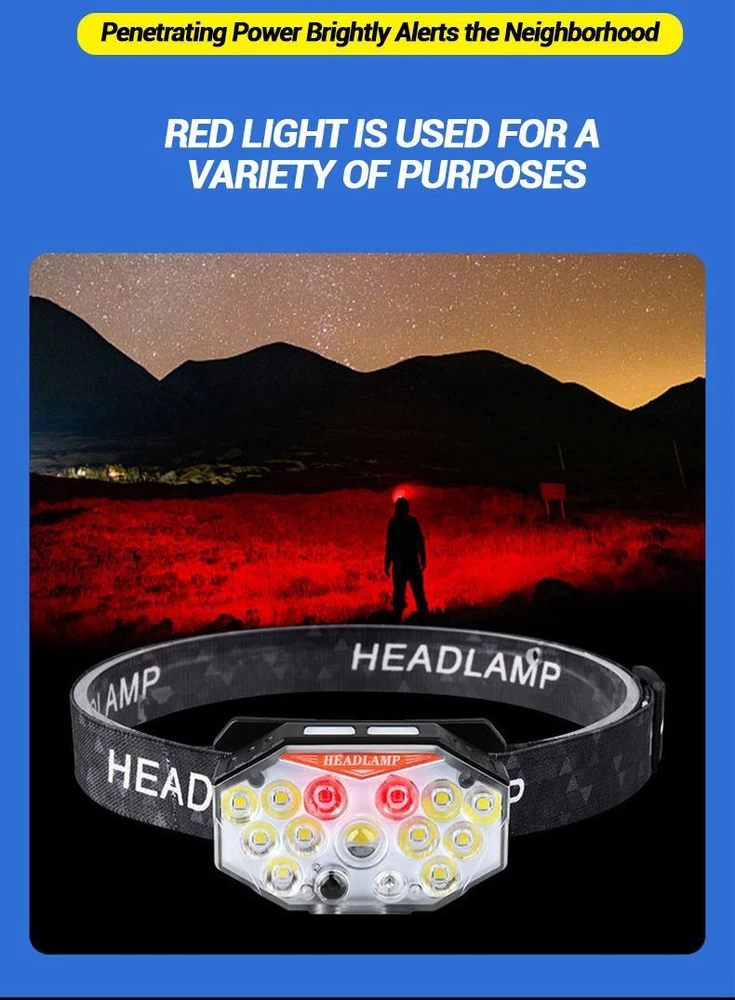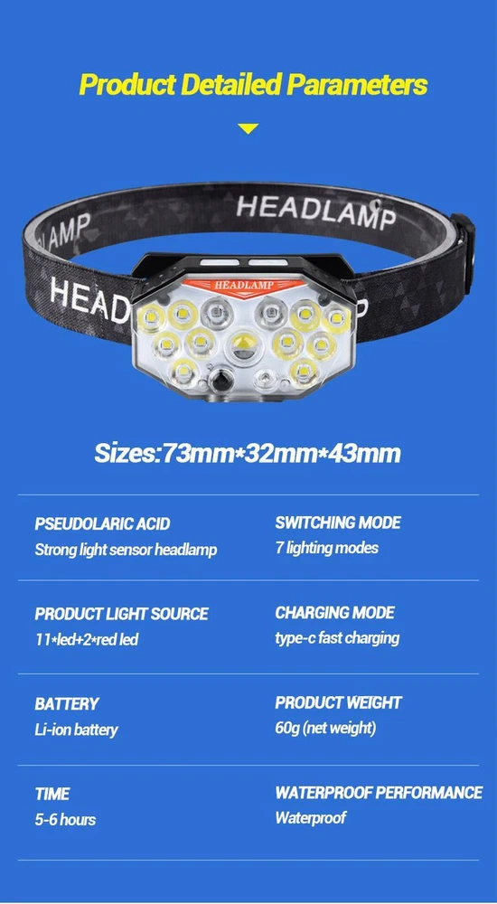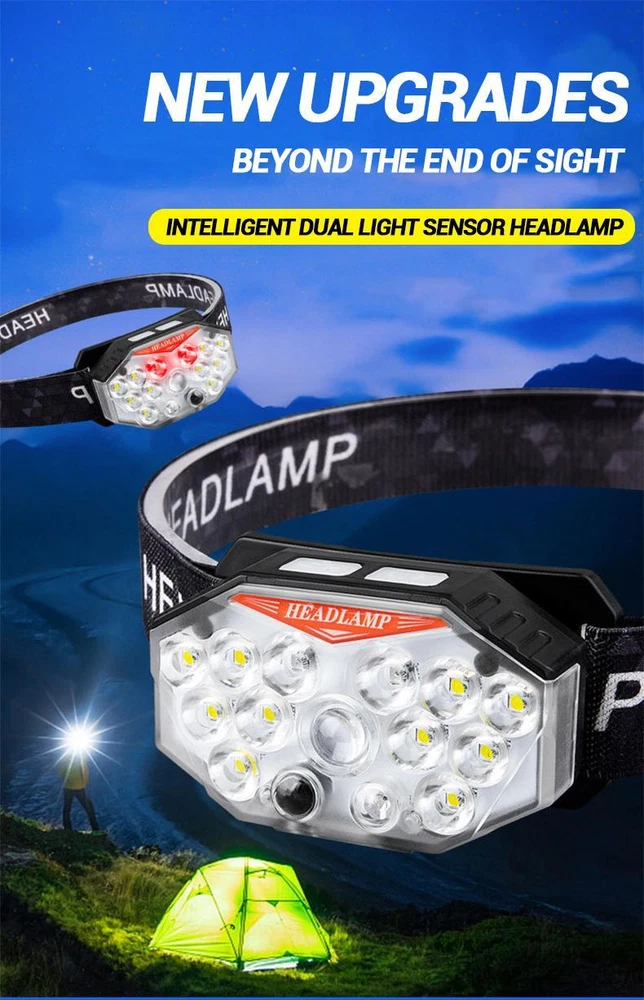 Free and fast shipping , shipping take up 1-7 Business Days 30 Day Return Accepted EASY PAYMENT via PayPal, Credit Card, PayPal Credit, Google Pay... Headlamp USB Type-c Rechargeable LED Battery Waterproof Plastic Multicolor Specification Product Name: Strong Light Sensing Headlight Product light source: 11 * LED+2 * red LED Using battery: built-in polymer battery(800 mah) Endurance: 2-8 hours Switch position: 7-speed lighting mode Charging method: TYPE-C intelligent fast charging Product weight: 60g (bare lamp/battery included) Waterproof performance: Lifestyle waterproof Lightly touch the switch for 4th gear dimming; Single lamp strong light (inductive) Single light weak light (inductive) 10 strong lights (inductive) 11 strong lights (inductive) Long press to switch light source (3rd gear dimming) Long bright red light Alternating flicker Sos INTELLIGENT SENSOR YOU CAN CONTROL THE HEADLAMPONIOFF BY WAVING 10-15CMSENSING DISTANCEALL GEARS CAN BE SENSED REVIEWS The product came very well packaged. I'm very happy. thank you for everything. Seller strongly recommended. This is great! I definitely recommend! Product looks amazing Delivery was fast. Excellent seller, great communication. I advise everyone to buy it!