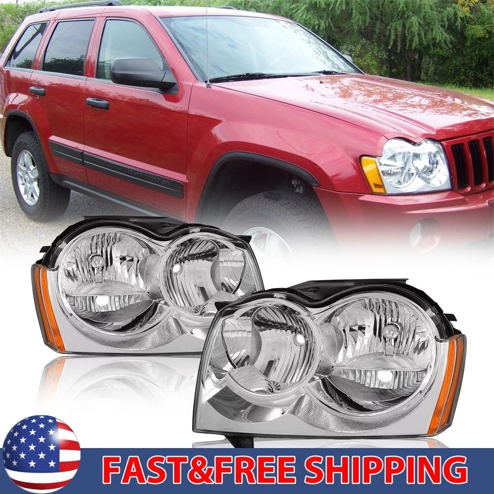 Headlights Assembly Fit2005 2006 2007 Jeep Grand Cherokee Chrome Housing Pair