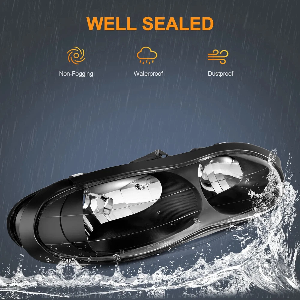 Headlights Assembly Pair for Chevy Camaro 1998-2002 Black Housing Replacement