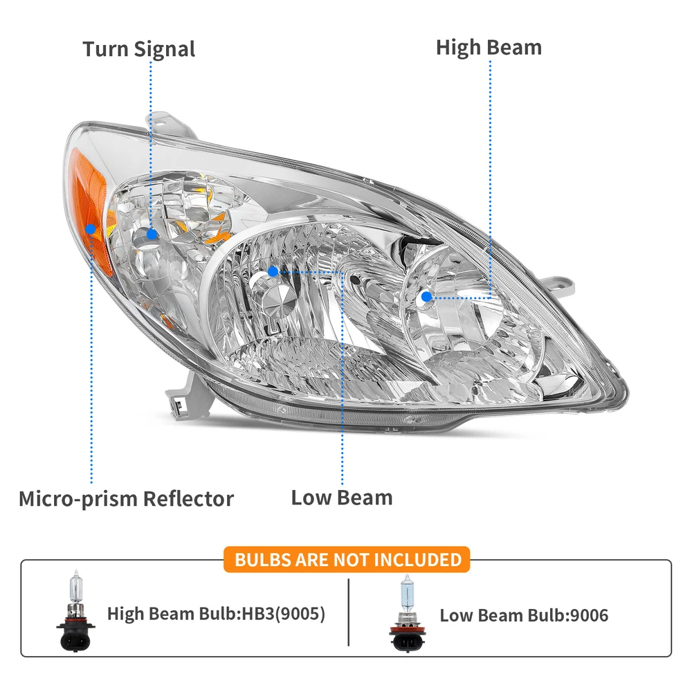 Item Description: - Condition: 100% Brand New and Never Used. - Made of materials that meet or exceed OEM requirements. - Color: Chrome Housing/Clear Lens - Bulb Type: 9005/9006 (Not Included) Package includes: - 1X Pair of Headlights (1x Driver's side & 1x passenger's sides),bulbs are Not included Vehicle Fitment: - For 2003-2008 Toyota Matrix Note: 1. Professional installation is highly recommended, please contact us freely if you have any questions about installation. 2. Bulbs not included, use stock bulbs for installation. Shipping The shipping rates listed are only for residential or commercial destinations in the continental 48 United States. All international sales will go through eBay Global Shipping Program.Please ask us if there are any questions. We only ship the item to the address that is sent to us at the time of checkout. Please verify the correct shipping address in your PayPal account before making your payment. If we ship your item to an old or invalid address and you are not able to locate the item, we are not responsible for shipping a replacement. Currently, we do not ship to Hawaii, Alaska, Puerto Rico,APO/FPO/PO Boxes. We use USPS, UPS & FedEx as shipping method. Payments cleared before 12 PM PST, will be shipped on the same day. Payment We accept PayPal and all forms of credit card. We will only ship to the confirmed Paypal shipping address given with the payment. We do not offer local pick up service. Return 30 days Money Back Guarantee. If any package that needs to be returned, please contact our customer service first to receive a RMA form. All return items MUST be in brand new condition. About Us Specialized in aftermarket auto parts since 2012, we source and work directly with professional manufacturers to provide the highest quality parts at the most economical prices. We also has over 5 years of shipping experience with FedEx and USPS . Our packing quality is guarantee ,item shipping is timely! On Jul 9, 2023 at 20:53:38 PDT, seller added the following information: On Oct 9, 2023 at 19:46:35 PDT, seller added the following information: On Dec 17, 2024 at 23:08:11 PST, seller added the following information: