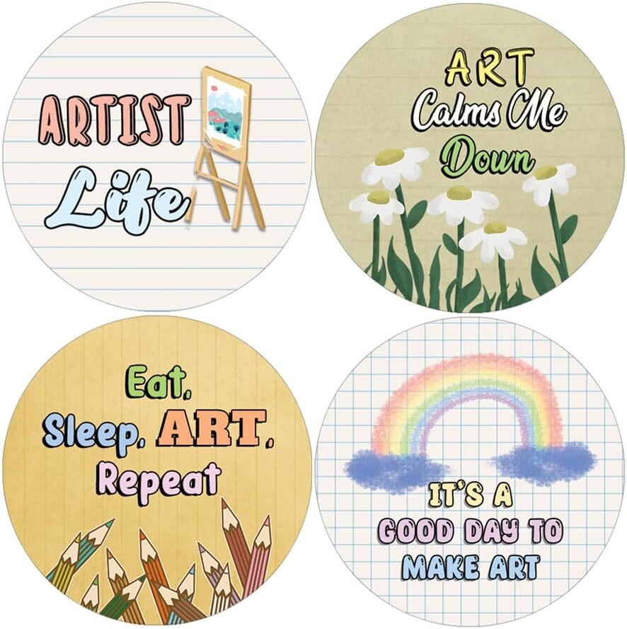 16 UNIQUE DESIGNS INSPIRING STICKERS FOR YOUR DIY PERSONALIZED DECORATIONS - Creanoso Art Heals My Soul Stickers (10-Sheets). These colorful and uniquely inspiring round shaped stickers are the best tool for DIY decoration and personalization of your belongings. GREAT STOCKING STUFFERS , TEACHING SUPPLEMENTARY MATERIALS, AND GIVEAWAY - Great stocking stuffers gifts for Boys, Girls, Teens, Kids. A perfect design to give during classroom school activities, home schooling,birthdays, anniversaries, family day, and any other special occasions. MADE WITH DURABLE AND WATERPROOF MATERIALS - There is a lamination or coating to make the stickers high water resistant, and WILL NOT fade from the water. The stickers can stick it anywhere you like, and it sticks there and lasts a long time. A COLORFUL AND DECOR STICKER DECAL - Each sheet with 16 individual round stickers. There are 10 sheets , with a total of 160 pcs of stickers. STICKER SIZE: 1.5 INCHES IN DIAMETER Art Heals My Soul Stickers (10 Sets X 16 Designs) COLORFUL AND COLLECTION OF TEXT STICKERS • Well designed. • Very encouraging. • Self-adhesive. Art Heals My Soul Stickers (10 Sets X 16 Designs) are super fun to collect; you can't have just one! That's why you will find a selection of stickers right here. Each package comes with different stickers in a variety of designs. Stick them here, stick them there, stick them everywhere! Everyone will love these self-adhesive stickers. These colorful stickers are perfect for any adults and these come with very inspiring messages and bright pictures. A fun, inexpensive way to add a decorative, notes, and stationery. Delight yourself with uplifting messages designs that are very encouraging. Art Heals My Soul Stickers (10 Sets X 16 Designs) perfect for giveaways, behavior incentives, prizes! These stickers are acid-free, nontoxic, and safe for use on photos. This product comes with a 60 days money back guarantee. You can return them to us for a full refund.