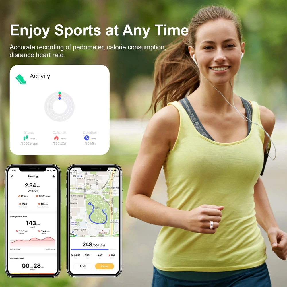 Introducing our silver smart health ring with diamonds, a stylish and functional RING that is both an elegant accessory and a comprehensive SLEEP TRACKER RING. designed for those who seek to stay fit and healthy while looking good.Designed as one of the SMART RINGS FOR WOMEN , this ensures that you can monitor your vital signs such as heart rate, blood oxygen levels, and more. With the capabilities of a SMART RING BLOOD PRESSURE MONITOR, it pairs seamlessly with your daily routine and exercise activities. It's a perfect blend of fashion and function, combining the sleek look of SMART RING for men with the sophisticated charm needed for women's wear.The SMART RING also doubles as a remote control for your camera, providing convenience at your fingertips. Its multi-functional design sets it apart from other products like the health rings for men or fitness rings for men on the market, making it a top choice for individuals who appreciate efficiency and elegance. The SMART RING functionality encourages an active lifestyle by allowing users to set goals and track their progress easily.">">"Perfect for gifting or personal use, this BEST SMART RING not only serves as a HEALTH TRACKER RING but also stands out among SMART RINGS. Whether you prefer a VITAL RING, an ULTRA HUMAN RING AIR, or simply want a reliable FITNESS TRACKER RING, this product delivers exceptional performance and reliability. Ideal for anyone interested in maintaining a healthy lifestyle while keeping up with the latest trends in wearable tech. 【Excellent Health Monitoring Partner】The Health tracker ring goes beyond standard health monitoring functions and can track your activity, sleep, stress, heart rate, heart rate variability, and blood oxygen saturation. This feature allows you to capture exciting moments in life and track your health status at any time, making you feel like you have a digital diary at all times and enjoying the peace of mind brought by health management. 【Ultimate Fitness Companion】Fitness trackers,It can identify exercise patterns and track the number of steps/calories/minutes of activities, including common daily exercises such as running, cycling, walking, etc. It can also record your steps, distance traveled, activity trajectory, calorie expenditure, and other exercise data, allowing you to specify better exercise methods based on the tracking data. 【No app subscription fees】Health tracker ring, Adopting IP68 waterproof design, it can withstand swimming and intense exercise. Seamless collaboration with iOS and Android - no need to subscribe to apps! 【Convenience of Smart Rings】The design of this smart ring health tracker takes convenience into consideration. Simply shake your finger twice, and the camera shutter will start, allowing you to remotely control your phone's camera to take photos, allowing your hands to capture perfect photos without any additional devices. 【Fast charging&long-lasting battery】This smart ring health tracker can be magnetically charged, with a battery life of 2 to 4 days and a standby time of 6-8 days. It can be fully charged within an hour. The portable charging case comes with multiple charging cycles to ensure you always have power when needed, providing you with persistent data tracking.