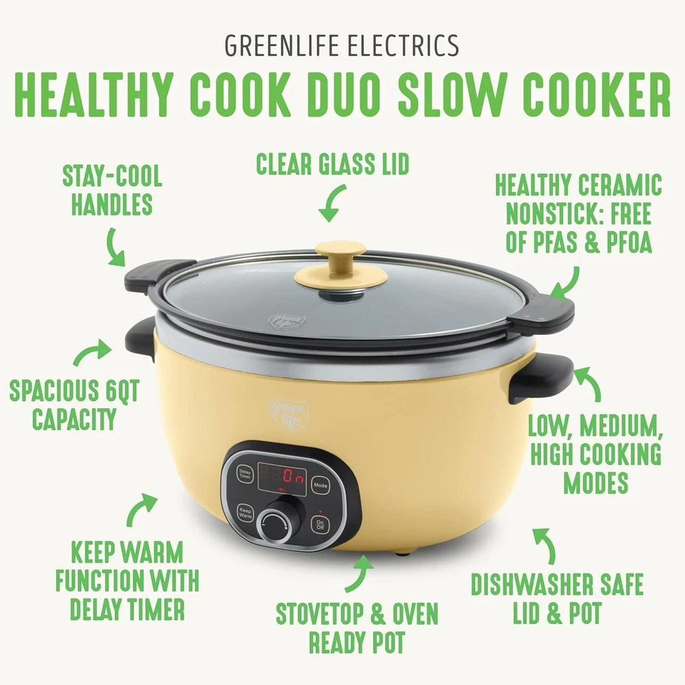 Healthy Cook Duo - 6QT Slow Cooker with Programmable Timer and Nonstick Interior