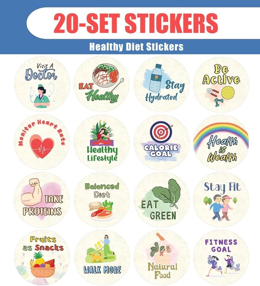16 UNIQUE DESIGNS INSPIRING STICKERS FOR YOUR DIY PERSONALIZED DECORATIONS - Creanoso Healthy Diet Stickers (20-Sheets). These colorful and uniquely inspiring round shaped stickers are the best tool for DIY decoration and personalization of your belongings. GREAT STOCKING STUFFERS , TEACHING SUPPLEMENTARY MATERIALS, AND GIVEAWAY - Great stocking stuffers gifts for Boys, Girls, Teens, Kids. A perfect design to give during classroom school activities, home schooling,birthdays, anniversaries, family day, and any other special occasions. MADE WITH DURABLE AND WATERPROOF MATERIALS - There is a lamination or coating to make the stickers high water resistant, and WILL NOT not fade from the water. The stickers can stick it anywhere you like, and it sticks there and lasts a long time. A COLORFUL AND DECOR STICKER DECAL - Each sheet with 16 individual round stickers. There are 20 sheets , with a total of 320 pcs of stickers. TICKER SIZE: 1.5 INCHES IN DIAMETER Healthy Diet Stickers (20 Sets X 16 Designs) COLORFUL AND COLLECTION OF TEXT STICKERS • Well designed. • Very encouraging. • Self-adhesive. Healthy Diet Stickers (20 Sets X 16 Designs) are super fun to collect; you can't have just one! That's why you will find a selection of stickers right here. Each package comes with different stickers in a variety of designs. Stick them here, stick them there, stick them everywhere! Everyone will love these self-adhesive stickers. These colorful stickers are perfect for any adults and these come with very inspiring messages and bright pictures. A fun, inexpensive way to add a decorative, notes, and stationery. Delight yourself with uplifting messages designs that are very encouraging. Healthy Diet Stickers (20 Sets X 16 Designs) perfect for giveaways, behavior incentives, prizes! These stickers are acid-free, nontoxic, and safe for use on photos. This product comes with a 60 days money back guarantee. You can return them to us for a full refund.