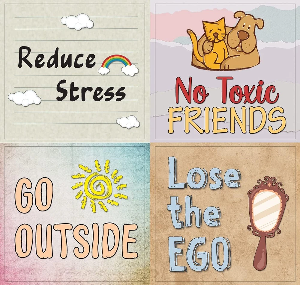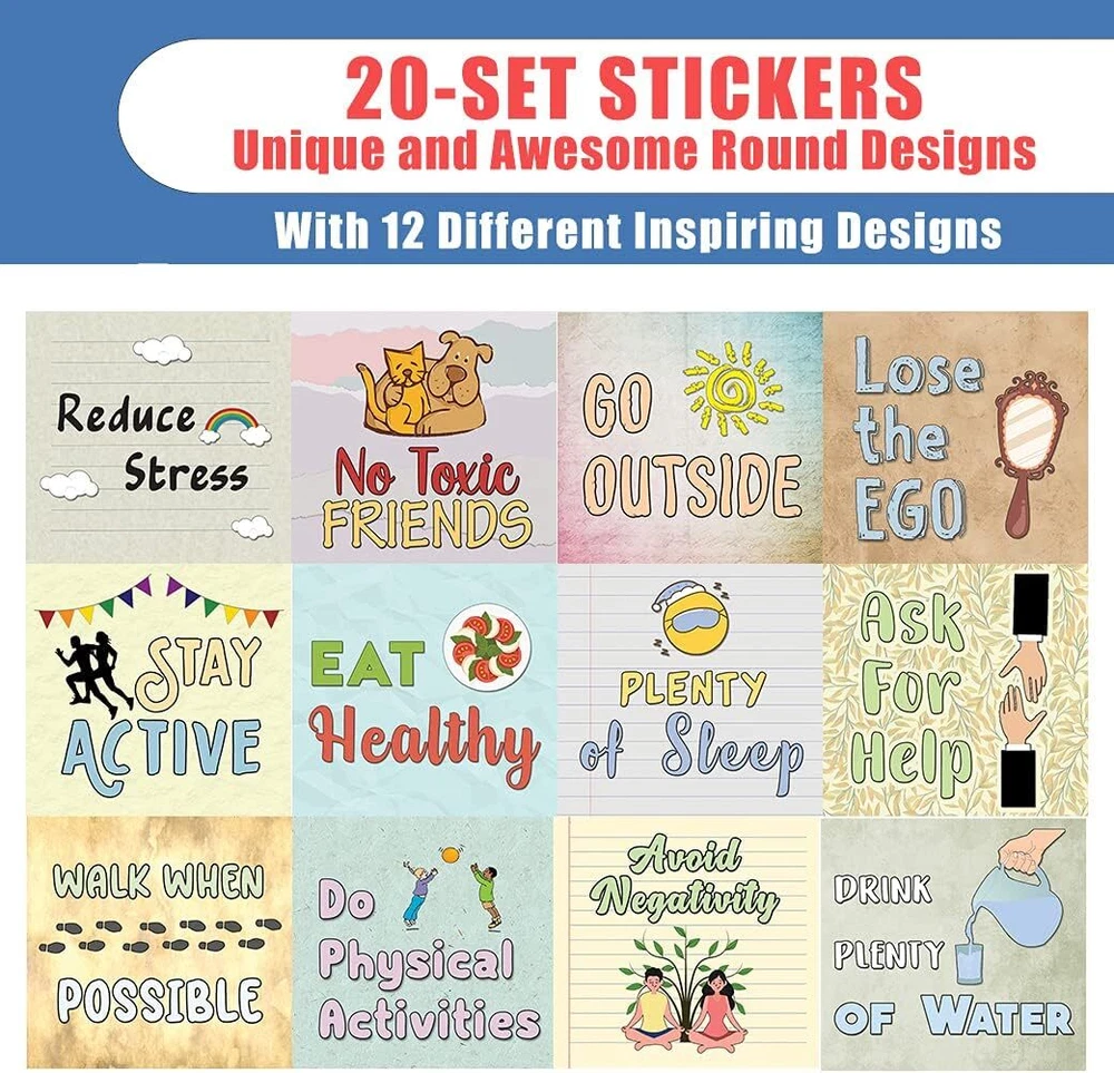 12 UNIQUE DESIGNS INSPIRING STICKERS FOR YOUR DIY PERSONALIZED DECORATIONS - Creanoso Healthy Lifestyle Reminders – 20 Sheet. These colorful and uniquely inspiring square shaped Creanoso Healthy Lifestyle Reminders are the best tool for DIY decoration and personalization of your belongings. WIDE APPLICATION ON ANY FLAT SURFACE - can be used on any flat surface as decoration and personalization of your belongings. These awesome stickers can be stuck on a laptop, notebook, water bottle, pencil box, lunch box, suitcase, hard hat & helmet, decal artworks, phone cover, bikes, bicycles, and many more. MADE WITH DURABLE AND WATERPROOF MATERIALS - There is a lamination or coating to make the stickers high water resistant, and WILL NOT fade from the water. The stickers can be stuck anywhere you like, and they stick there and last a long time. A LOT OF STICKERS FOR LOWER PRICE - Each sheet with 12 individual 2.1” x 2.0” square stickers. There are 20 sheets, with a total of 240 pcs of stickers. GREAT STOCKING STUFFERS, TEACHING SUPPLEMENTARY MATERIALS, AND GIVEAWAY - Great stocking stuffers gifts for Kids, Teens, Adults. A perfect design to give during classroom programs, homeschooling, birthdays, gatherings, family day, physical activities, and any other special occasions. Healthy Lifestyle Reminders Stickers (20 Sets X 12 Designs) COLORFUL AND COLLECTION OF TEXT STICKERS • Well designed. • Very encouraging. • Self-adhesive. Healthy Lifestyle Reminders (20 Sets X 12 Designs) are super fun to collect; you can't have just one! That's why you will find a selection of stickers right here. Each package comes with different stickers in a variety of designs. Stick them here, stick them there, stick them everywhere! Everyone will love these self-adhesive stickers. These colorful stickers are perfect for any adults and these come with very inspiring messages and bright pictures. A fun, inexpensive way to add a decorative, notes, and stationery. Delight yourself with uplifting messages designs that are very encouraging. Healthy Lifestyle Reminders (20 Sets X 12 Designs) perfect for giveaways, behavior incentives, prizes! These stickers are acid-free, nontoxic, and safe for use on photos. This product comes with a 60 days money back guarantee. You can return them to us for a full refund.