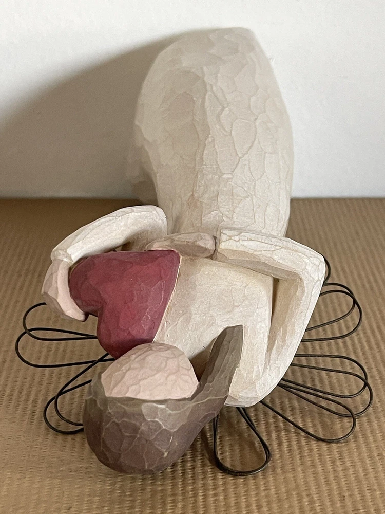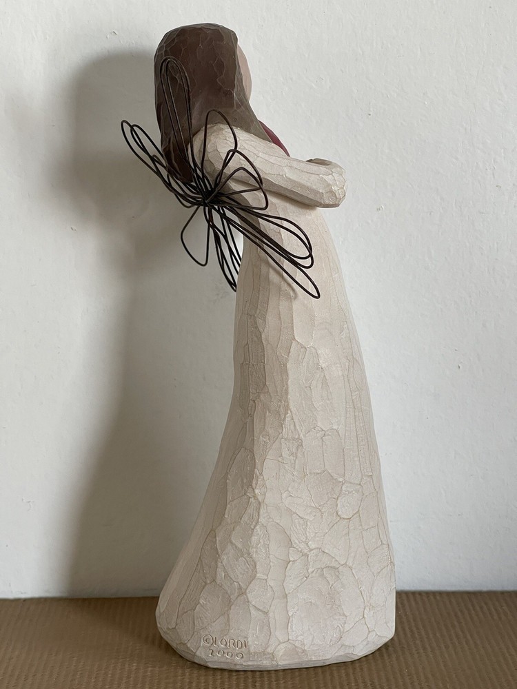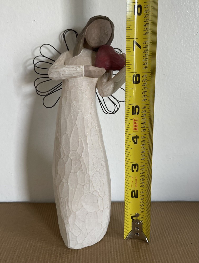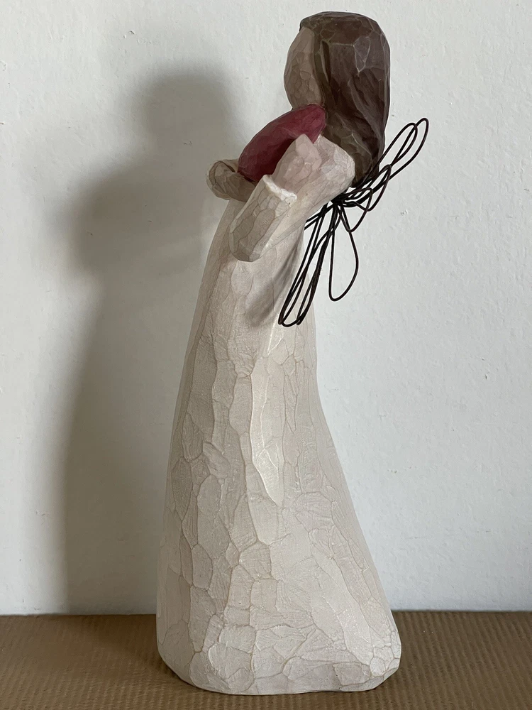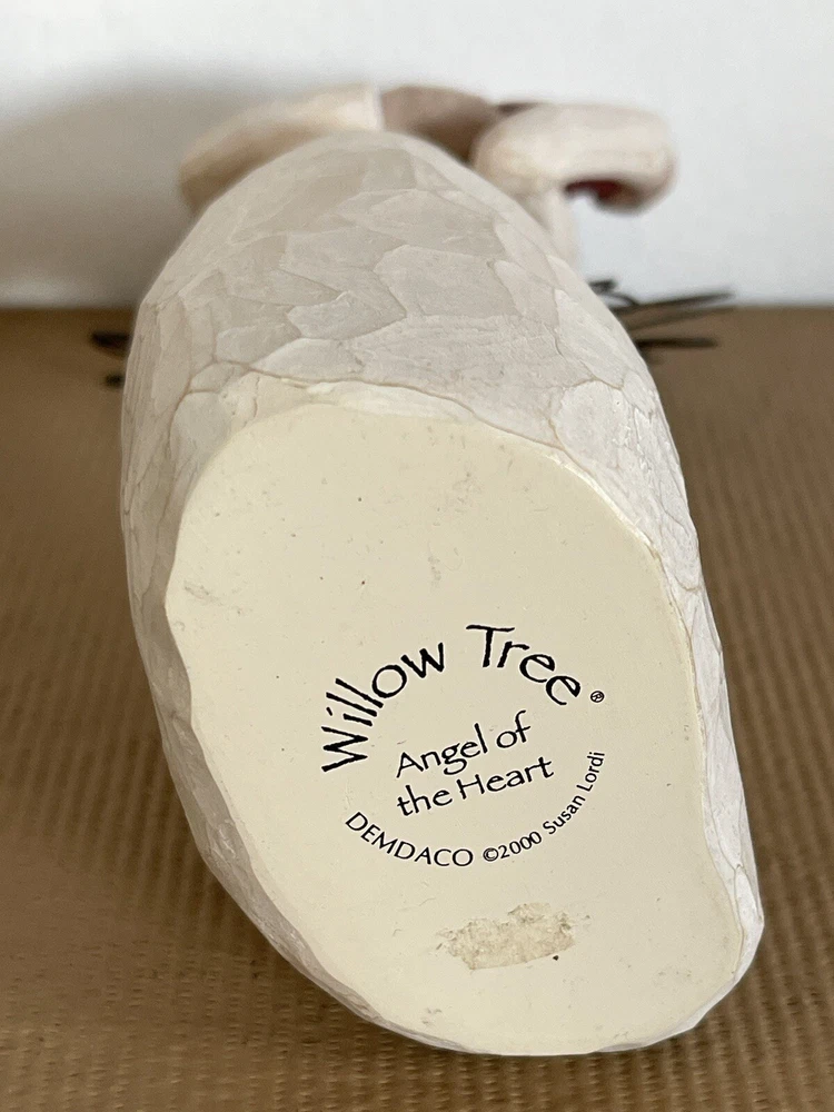 This beautiful Willow Tree figurine is a must-have for any collector. Created by Susan Lordi, this angelic piece features a heart pattern and is part of the Willow Tree collection. Made in China in 2000 by Demdaco, this figurine is a perfect addition to any decorative collection. This is preowned so has ware and scratches see pictures for details and condition