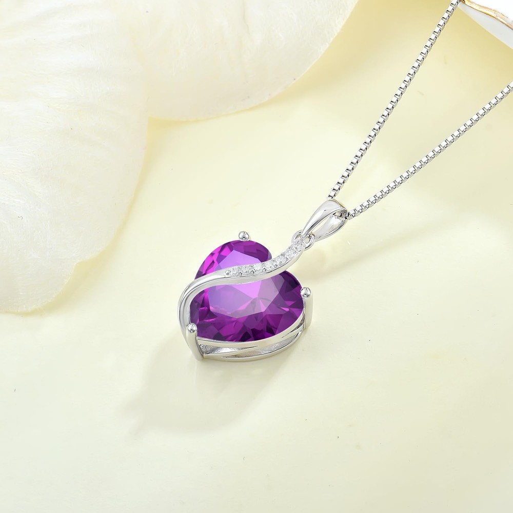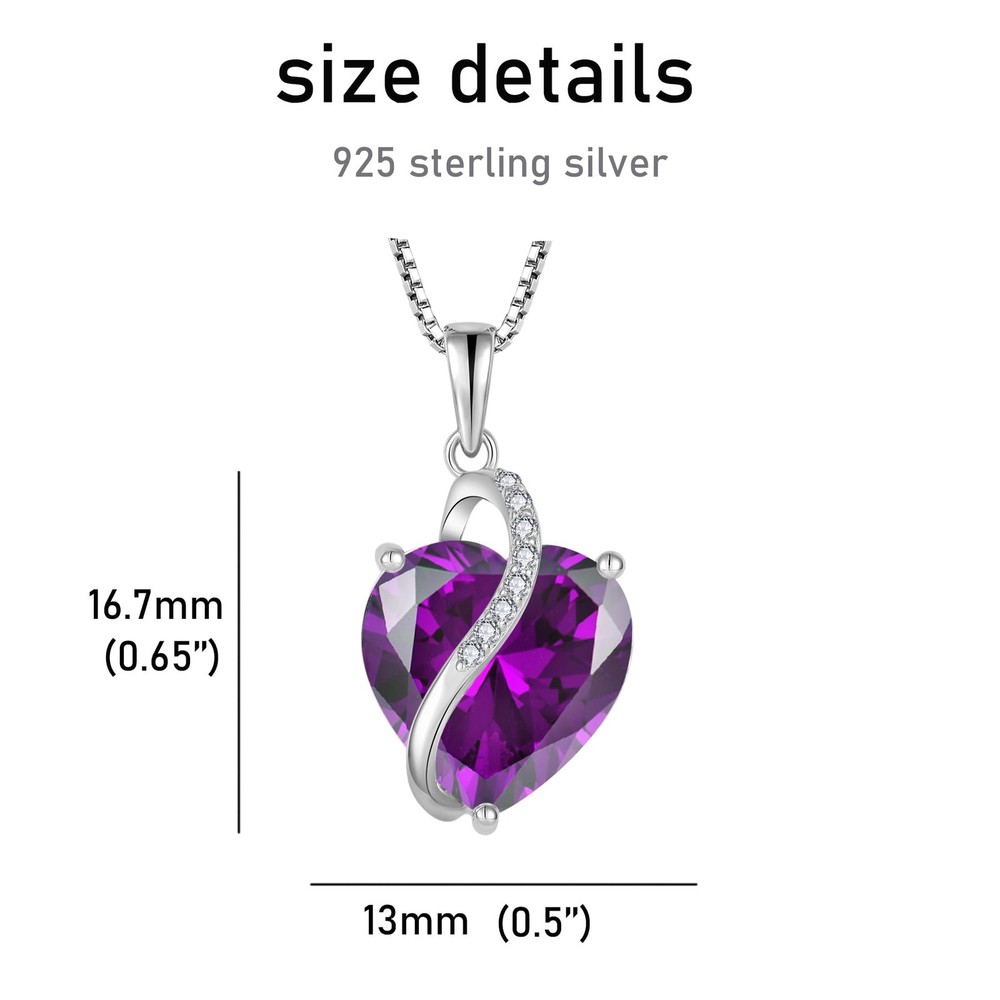 Heart Necklace 925 Sterling Silver Pendant with Chain 13*13mm 5A Cubic Zirconia Purple February Birthstone Amethyst Color Jewelry Gift for Women Mother's Day Valentine's Day Chirstmas Metal of necklace : 925 sterling silver Gem type of necklace : 3A cubic zirconia 925 silver chain : 45cm + 3cm extender, adjustable Come with an elegant jewelry box Promise : If any of quality problem, could exchange a new one with same type, or offer a refund directly within 30 days
