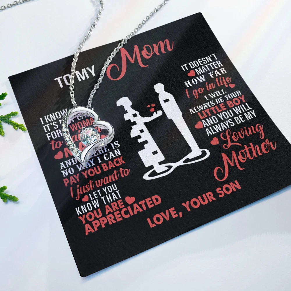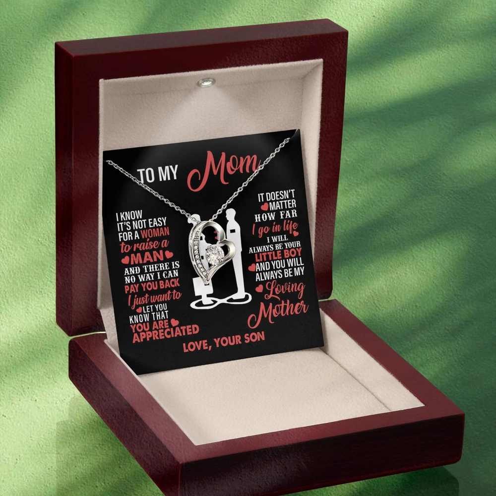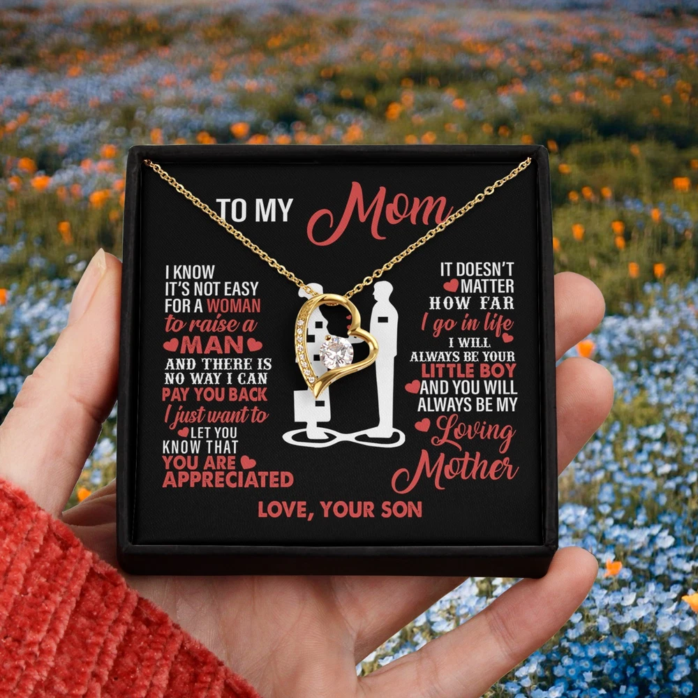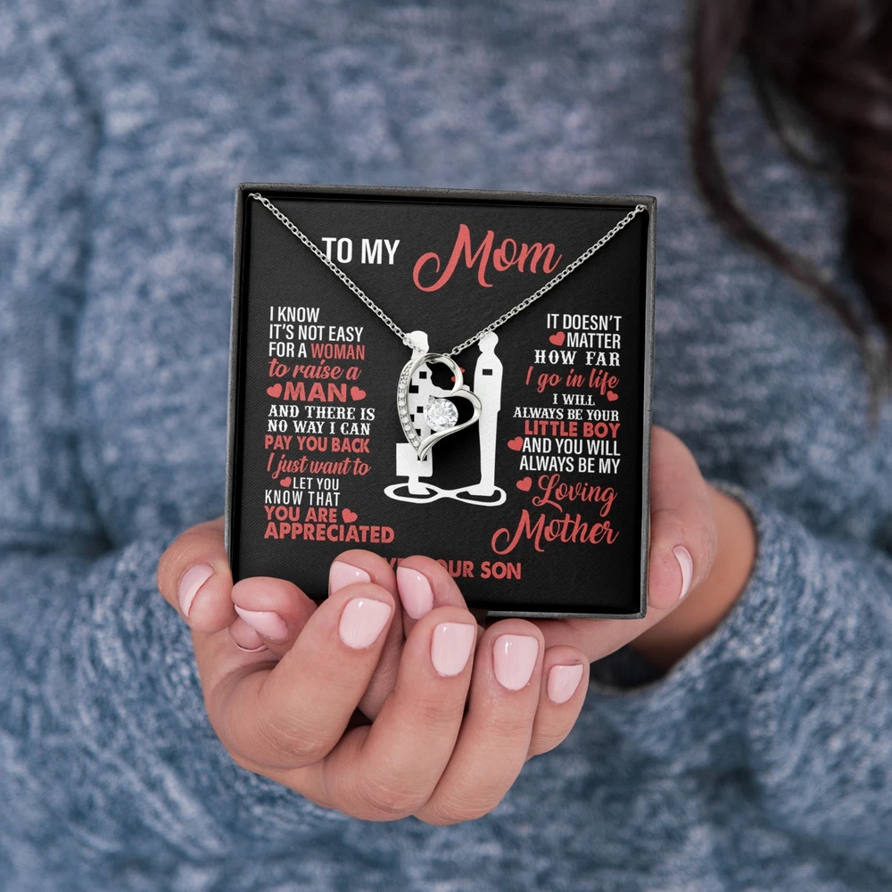 To My Mom Necklace: A Gift from the Heart Celebrate the woman who gave you everything with the To My Mom Necklace – a timeless piece honoring her strength, love, and endless sacrifices. Perfect for birthdays, Mother’s Day, or simply to say “I love you.” A Message from Your Son This necklace carries more than sparkle – it carries your gratitude. From sleepless nights to unwavering support, your mom deserves a gift that says what words often can’t. For Every Milestone You Shared Whether you’re near or far, she’ll feel your love every time she wears it. A keepsake from her little boy – now grown, but always her son. Graceful and Meaningful Beautifully crafted to reflect the unconditional love between a mother and son, this necklace is more than jewelry—it’s a reminder of your unbreakable bond. Thank You, Mom Because no matter where life takes you, she will always be your guiding light. The To My Mom Necklace is a symbol of the love that raised you.