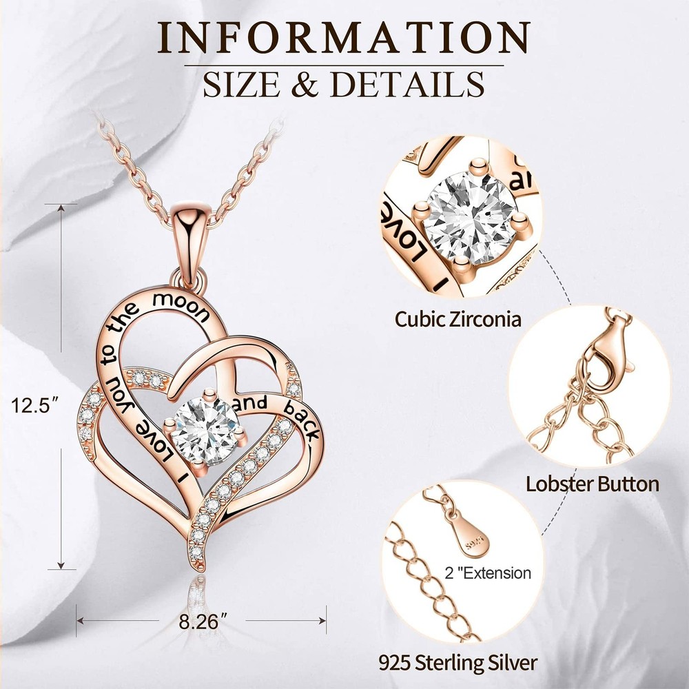 Brand: Name: Sterling Silver Love Heart Birthstone Necklace Size: Pendant Size: 0.87”ⅹ1.02” CZ stone Size: 0.3”ⅹ0.3” Chain Length: 18”+2” Stone Type: 5A cubic zirconia Material: 925 sterling silver Applicable gift-giving scenarios: Mother's Day Gifts Christmas Gifts Valentine's Day Gifts Anniversary Gifts Birthday Gifts Mothers 𝐃𝐚𝐲 𝐆𝐢𝐟𝐭𝐬 - Are you looking for special Mother's Day gifts for mom? What could be more attractive to mom than this double heart necklace? No words are necessary between two loving hearts, this heart necklace express love for mother, commitment to a loved one or friendship for a confidante, elegant options for every occasion you have. 𝐆𝐢𝐟𝐭𝐬 𝐟𝐨𝐫 𝐇𝐞𝐫 - As a romantic gift for all ages. The Most perfect jewelry gift for Mom, Wife, Girlfriend, Her, Daughter, Grandma on Christmas, Valentine's Day, Mother's Day, Thanksgiving, Anniversary, Birthday or other Holiday Occasions Gift ideas for Women. 𝐀𝐧𝐧𝐢𝐯𝐞𝐫𝐬𝐚𝐫𝐲 𝐆𝐢𝐟𝐭𝐬 - This exquisite heart necklace comes in a beautiful gift box, and the heart pendant engraved with the words "I Love You to the Moon and Back" symbolizes your eternal love for the special woman in your life. When she wears this birthday stone necklace, she will be the center of attention on any occasion and will be sincerely delighted by this little surprise. 𝐑𝐞𝐚𝐝𝐲 𝐟𝐨𝐫 𝐆𝐢𝐟𝐭 - No need for additional packaging, you can just give it away. It goes well with a variety of clothing. The perfect jewelry to expand a woman's fashion closet in a timeless, classic style. Absolutely perfect gift for wife, mom, grandma, girlfriend, daughter and her. 𝐒𝐞𝐫𝐯𝐢𝐜𝐞 𝐆𝐮𝐚𝐫𝐚𝐧𝐭𝐞𝐞 - We offer a 30-day return, refund or replacement guarantee. If you have any questions about our products, please feel free to contact us. is always committed to giving you the most satisfying shopping experience.