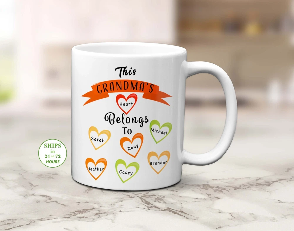 Heart Personalized Grandma Mug Persoanlzied Grandma Gift Hearts Grandma Gift Product Details.. This high quality 11oz. ceramic white mug has a premium hard coat that provides crisp and vibrant color reproduction sure to last for years. Perfect for all hot & cold beverages. The highest quality printing possible is used. It will never fade no matter how many times you wash it. Material: 100% Ceramic. Print both sides. Dishwasher and Microwave Safe. High Gloss + Premium White Finish. Printed in the U.S.A. Personalized & Custom. We support personalized and custom mug to add custom, when placing an order, you can add notes to the "order note" in shipping address section. Also you can contact us directly via message. Shipping Info. Ready to ship in 1 to 2 business days, All products are made-to-order and proudly printed in the United States. Shipped by USPS and DHL, You will receive your order in 5-7 days. Replace & Refund. All products are defective during shipping broken, chipped will be replaced free of charge. You are not satisfied with the product, we will refund 100% money to you. If any other issues arise, please do not hesitate to message, we would be more than happy to assist you.