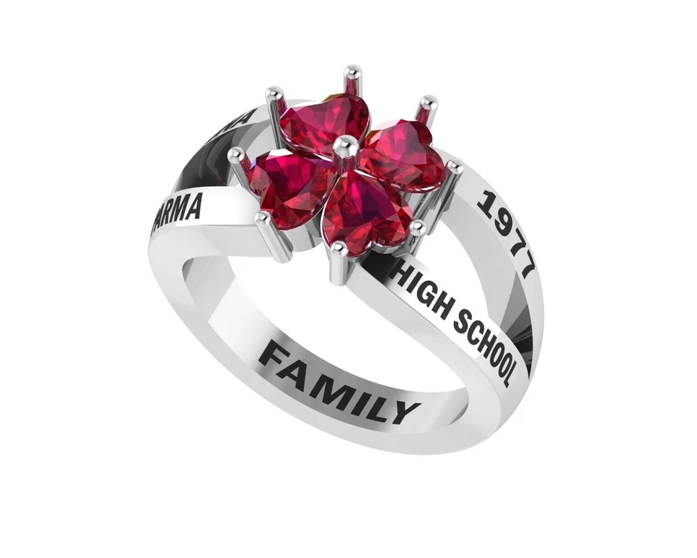 Heart Shape Birthstone Customized College & Class Unique Flower Ring 925 Silver