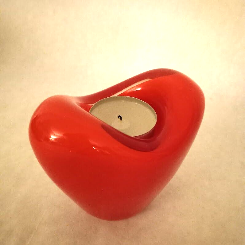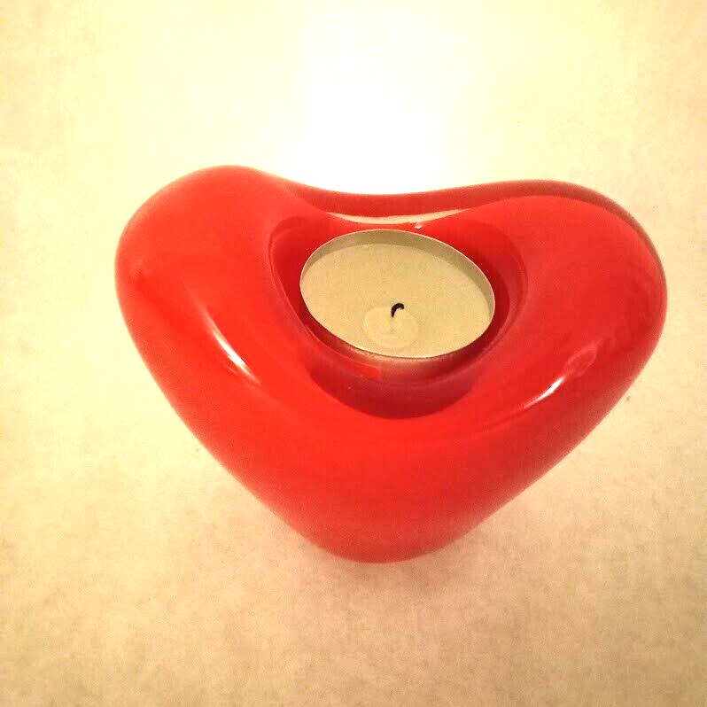 Theme: Valentine Subject: Heart Size: Medium Color: Red Antique: No Style: Art Deco Item Width: 2.75 in Brand: Teleflora Finish: Glossy Occasion: Valentine's Day Engraved: No Pattern: Hearts Item Height: 3.5 in Seller Notes: “excellent condition” Country/Region of Manufacture: China Item Length: 4 in Number in Pack: 1 Shape: Heart Material: Glass Type: Candle Holder