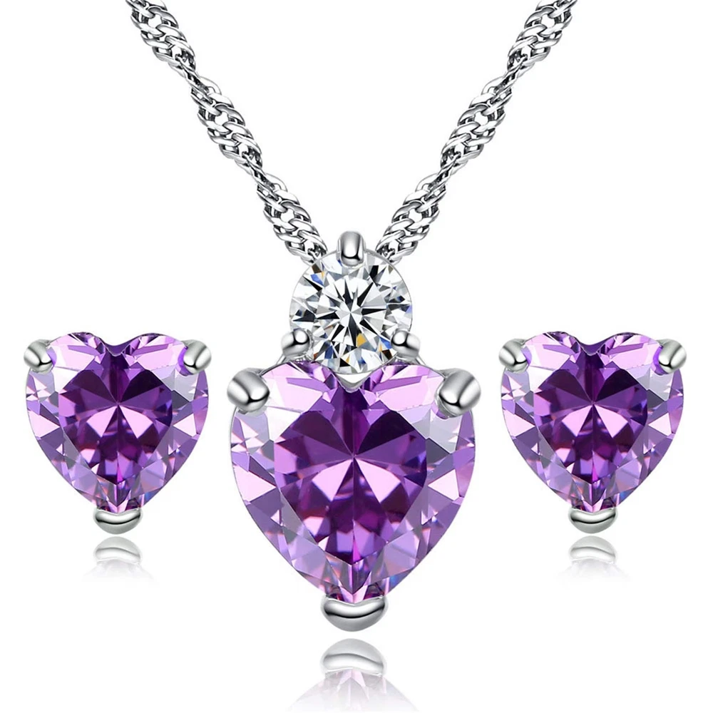Heart Solitaire Necklace and Stud Earrings Set, Love Heart Necklaces and Earrings Jewelry Set Crystals Birthstone Necklaces for Women Wedding Anniversary Product Details Color: Purple Brand: Hmooy UPC: 046432468438 EAN: 0046432468438 MPN: Does not apply Department : womens Date First Available : December 25, 2020 Manufacturer : HMOOY Brand, Seller, or Collection Name: HMOOY Metal: silver plated base Material: Crystal Gem Type: Cubic Zirconia Setting: Other-Setting-Type Chain: Fancy Clasp: Lobster Clasp Ring size: Adjustable Number of stones: 5