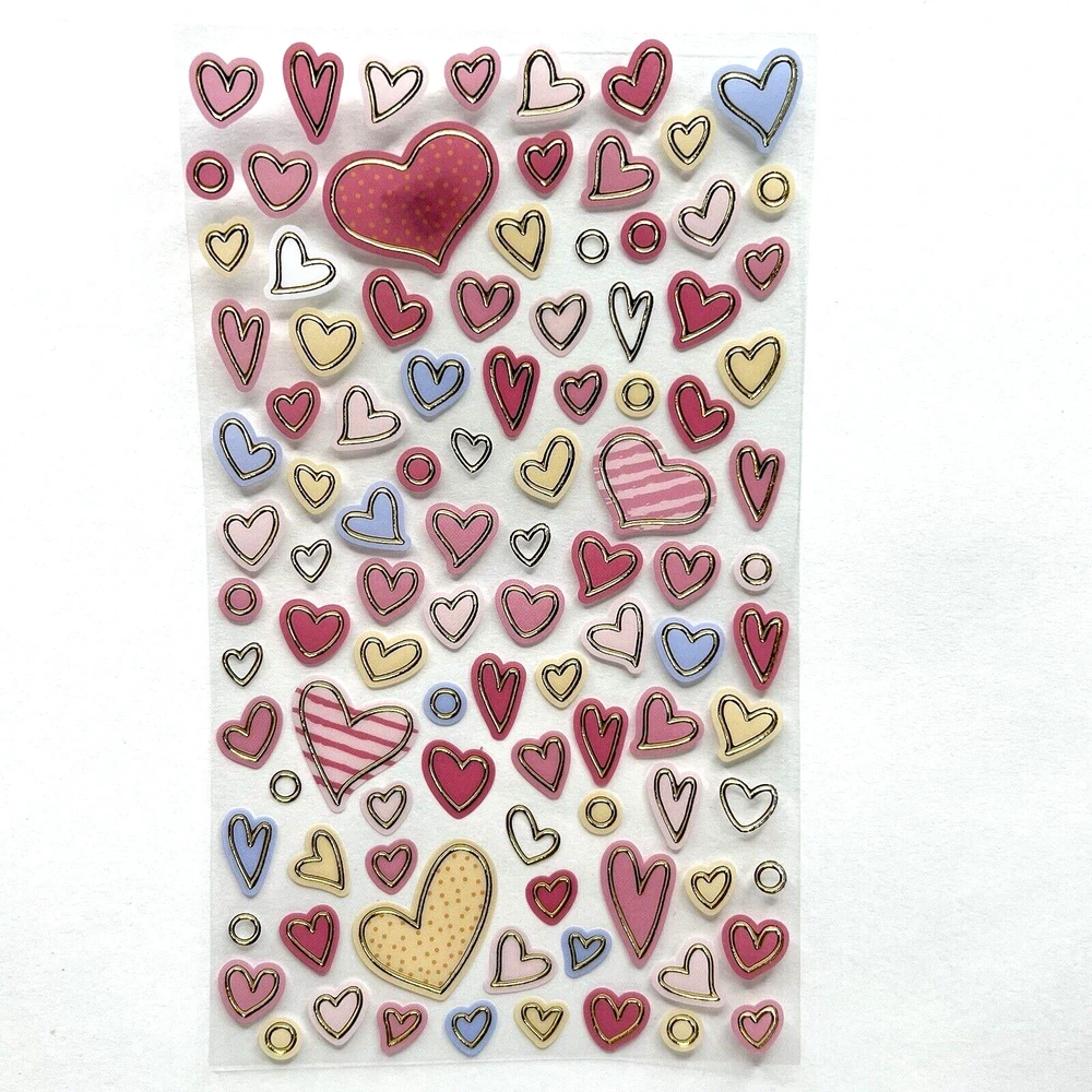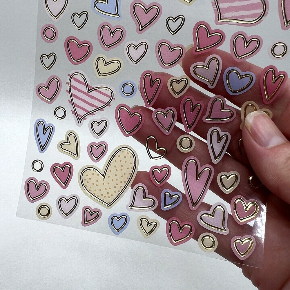 1 sheet heart stickers with gold foil accents. Sheet measures approx. 6 5/8 x 3 7/8 inches. I have more stickers, washi tape and paper for sale. I do combine shipping. Please put all the items you want to purchase in ONE cart and then pay. I will refund you the difference in shipping after shipping label is printed. Let me know if you have any questions through eBay messaging. Thank you for stopping by!