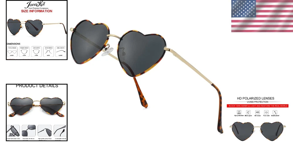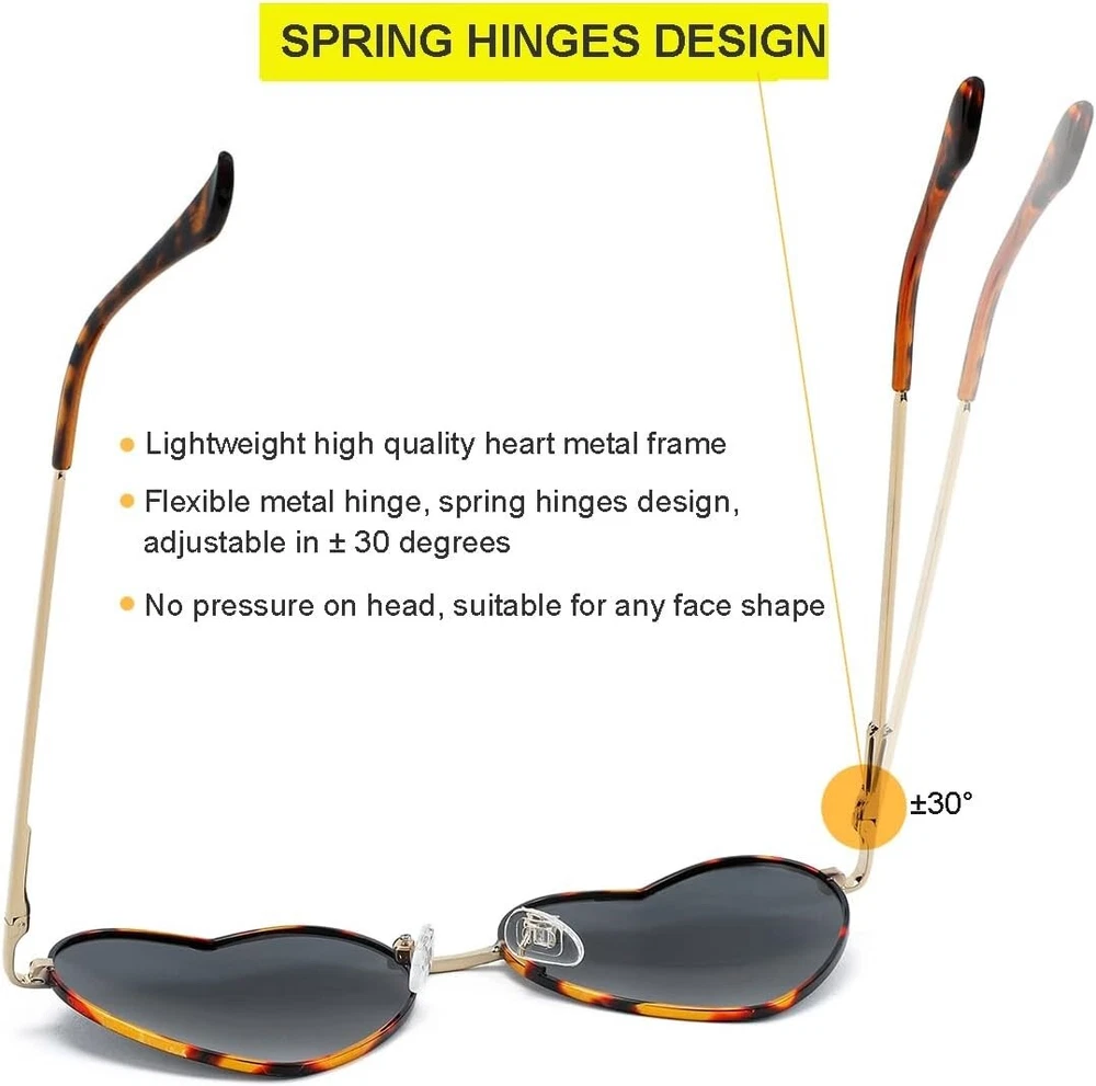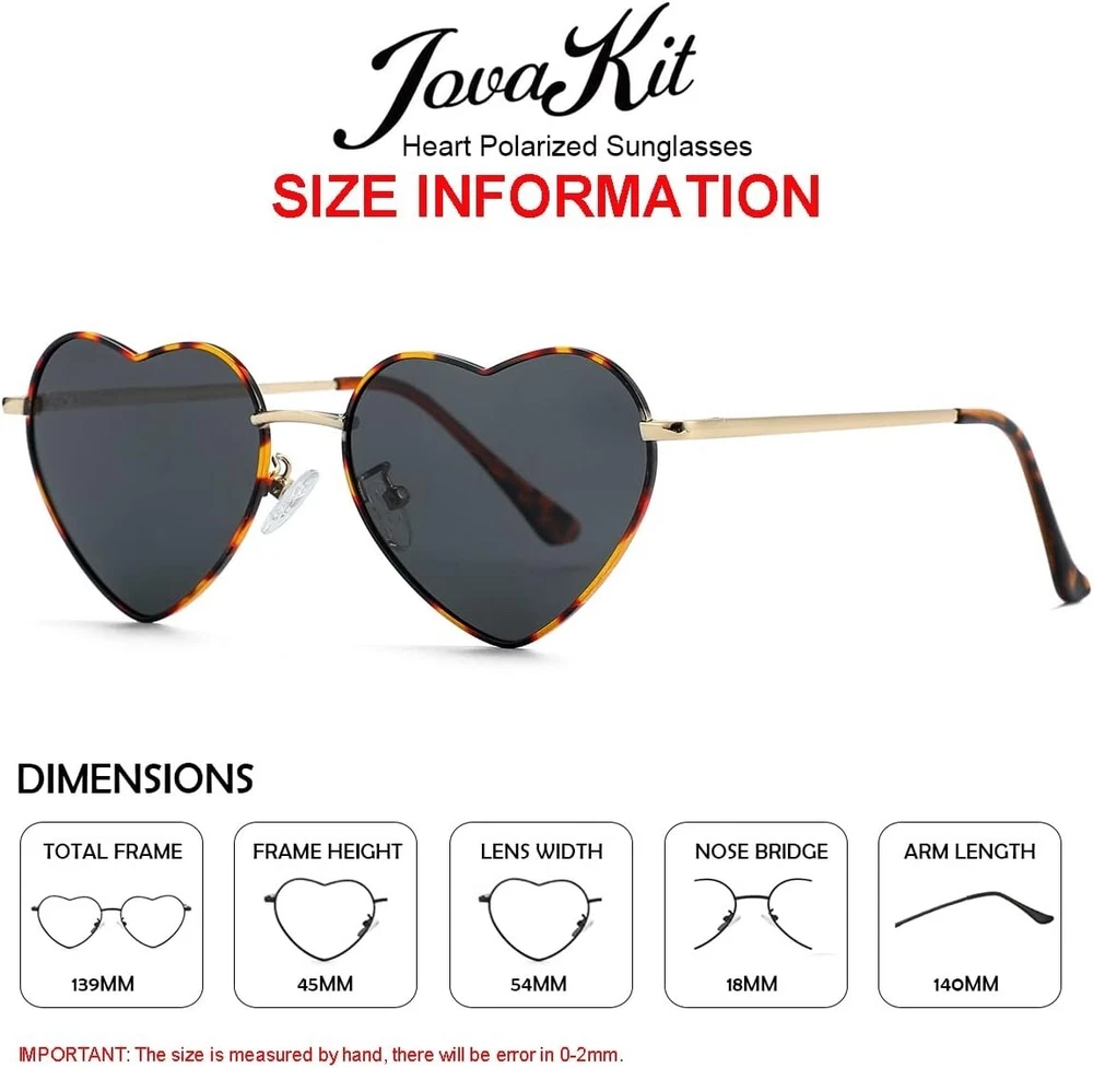 Lens Width: 54 Millimeters Frame Color: Details In Description UPC: Does not apply Lens Technology: Polarized Frame Material: Metal UV Protection: UV400 gtin13: Does not apply Package Dimensions: 5.8 X 2.2 X 1.4 Inches; 2.47 Ounces Type: Sunglasses Brand: Unbranded Color: B4 Tortoise/grey Theme: Heart Department: Womens