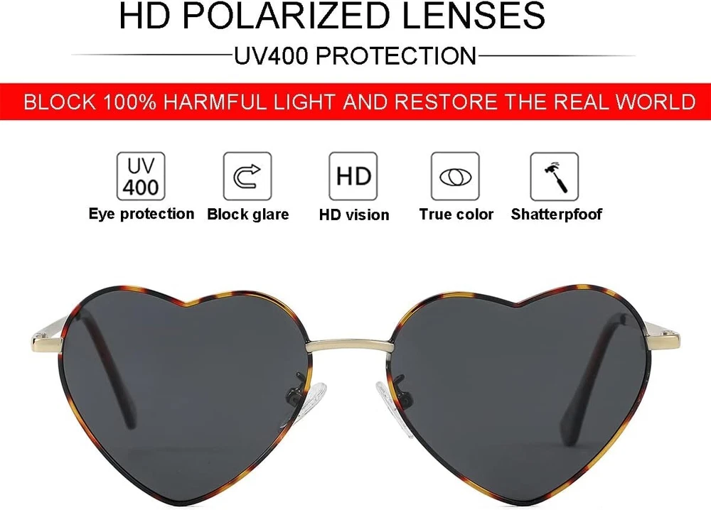 Heart-Shaped Polarized Sunglasses for Women - UV400 Protection and Fashion Charm