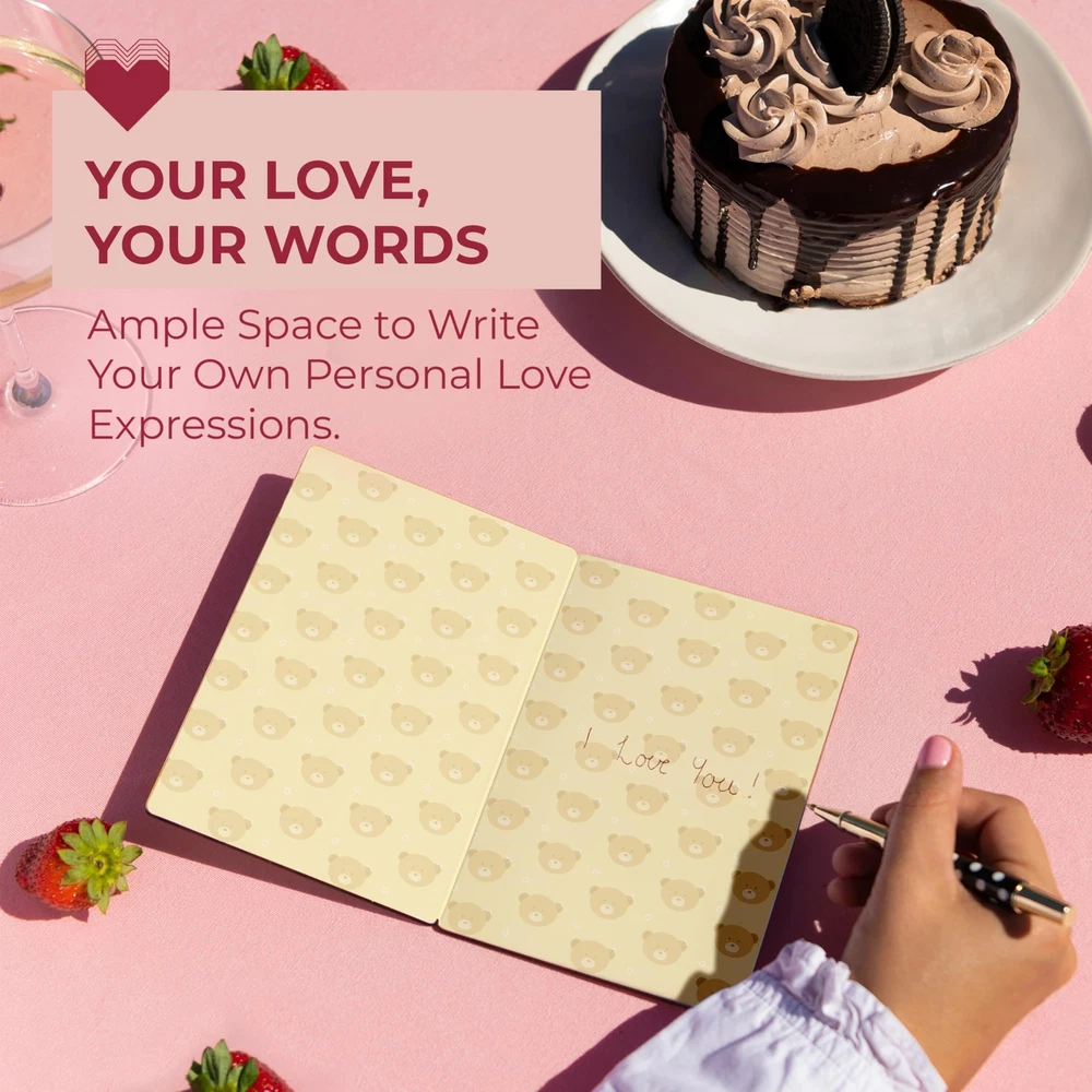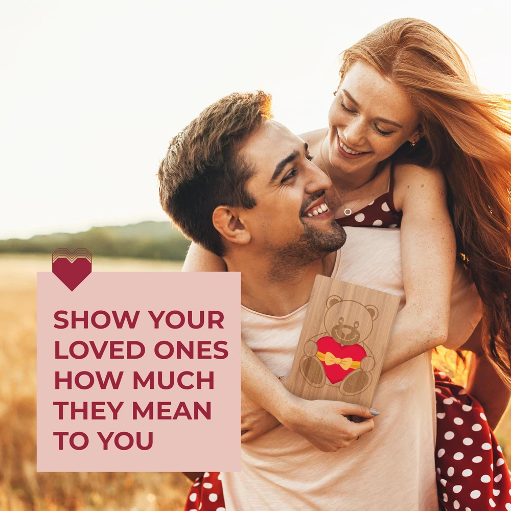 Let them know that they are surrounded by warmth and love with this teddy bear inspired card. This lightly colored wood card features a sweet teddy bear holding a brightly colored red heart tied with a yellow ribbon. This pop of color shows the recipient that they're in your heart. Inside the playful teddy bear theme is reflected as the perfect backdrop for a handwritten message or note. UNIQUE EXPRESSION OF LOVE - Elevate heartfelt messages with HeartSpace's handcrafted bamboo cards. Swap paper for this distinctive wooden card, a perfect anniversary card for your wife, husband, or an 'I love you' card for your girlfriend. Express your love uniquely! ENDURING KEEPSAKE - The wooden anniversary card from HeartSpace isn't just a card; it's a durable, long-lasting memento of your affection. Perfect for any wedding anniversary or to express your deep, unspoken love. LUXURY & NATURE IN YOUR HANDS: Experience the luxurious blend of artistry and sustainability with HeartSpace's handcrafted bamboo cards. Paired with quality envelopes, they are perfect for birthdays or anniversaries. YOUR LOVE, YOUR WORDS - Inside, left blank, HeartSpace's Bamboo Love Cards offers a canvas for your emotions. Craft a personalized anniversary card or a sincere expression of love that truly speaks from your heart to your loved one. SUSTAINABLE LOVE EXPRESSIONS- Embrace Flora's commitment to sustainability and HeartSpace's mission for a cleaner, greener world. Our eco-friendly sustainable Love Cards are not just heartfelt messages; they symbolize love and respect for Mother Earth.