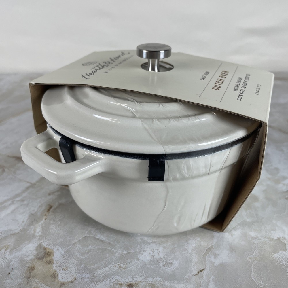 Absolutely love this mini Dutch oven! The Joanna Gaines design is charming, and the compact 0.5 qt size is perfect for small servings or sauces. The white enamel looks elegant, and it arrived in pristine condition with original wrapping. Great quality for the price—highly recommend!