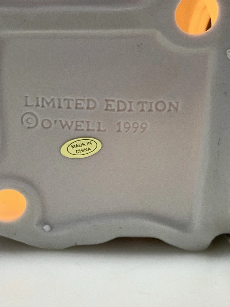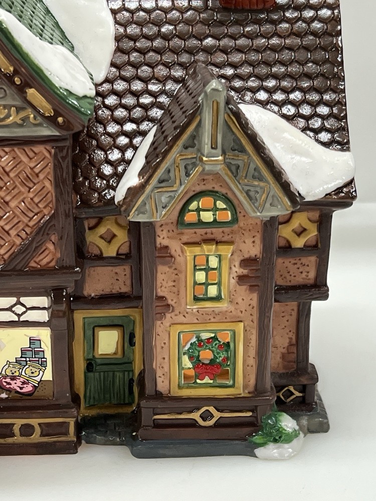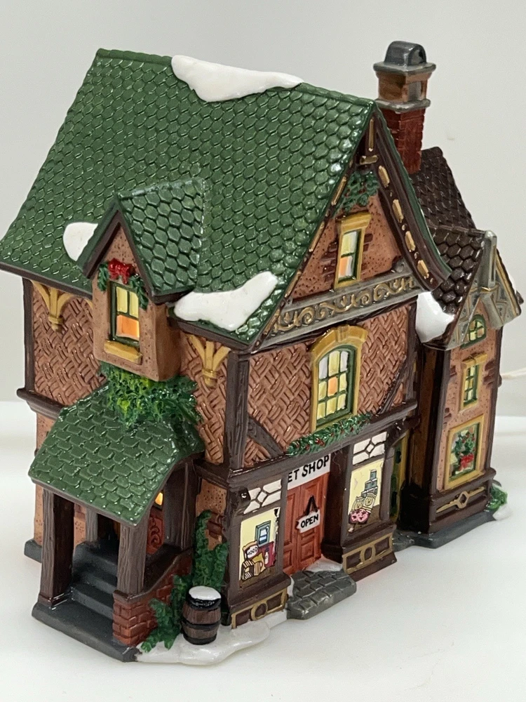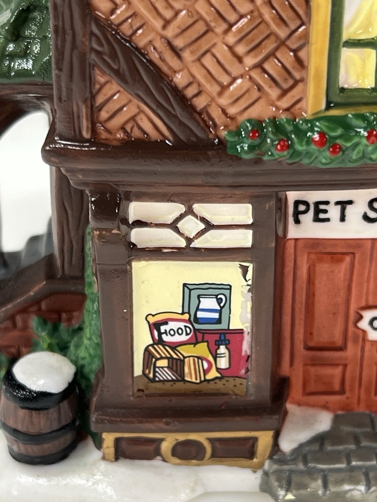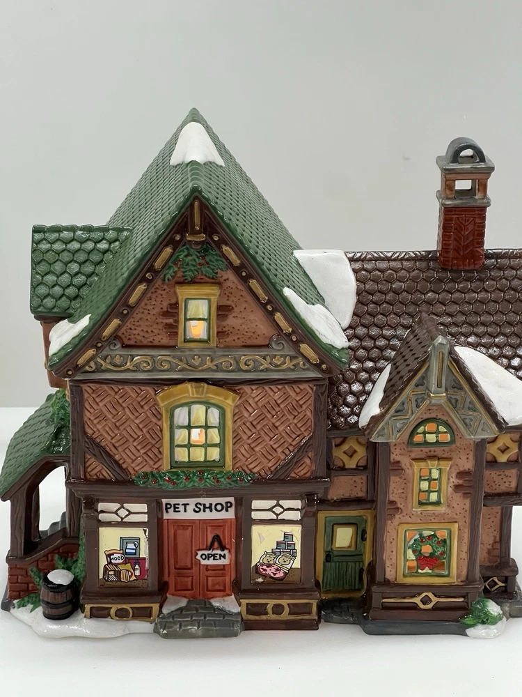 The Heartland Valley Village "Pet Shop" Deluxe Porcelain Limited Edition 1999 O'Well is a charming and collectible Christmas village piece from the late 20th century. This asymmetrical, hand-painted Victorian-style building features a pet shop theme, making it a delightful addition to any seasonal display. Handcrafted with a multicolor finish, this 8" long, 7" high, and 4" wide porcelain structure is both boxed and suitable for any room, adding a touch of nostalgia to your holiday decor. Incredible detail ! Excellent condition! Includes all original packaging including light & cord . Outer sleeve taped .