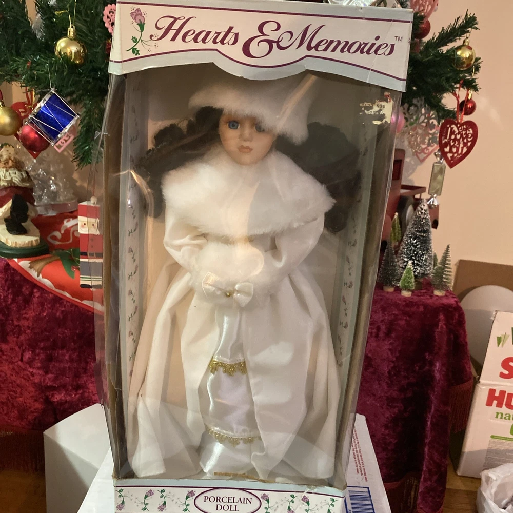 Hearts & Memories: White Winter Wonderland 16” Porcelain Doll. Condition is Used. Shipped with UPS Ground Saver.