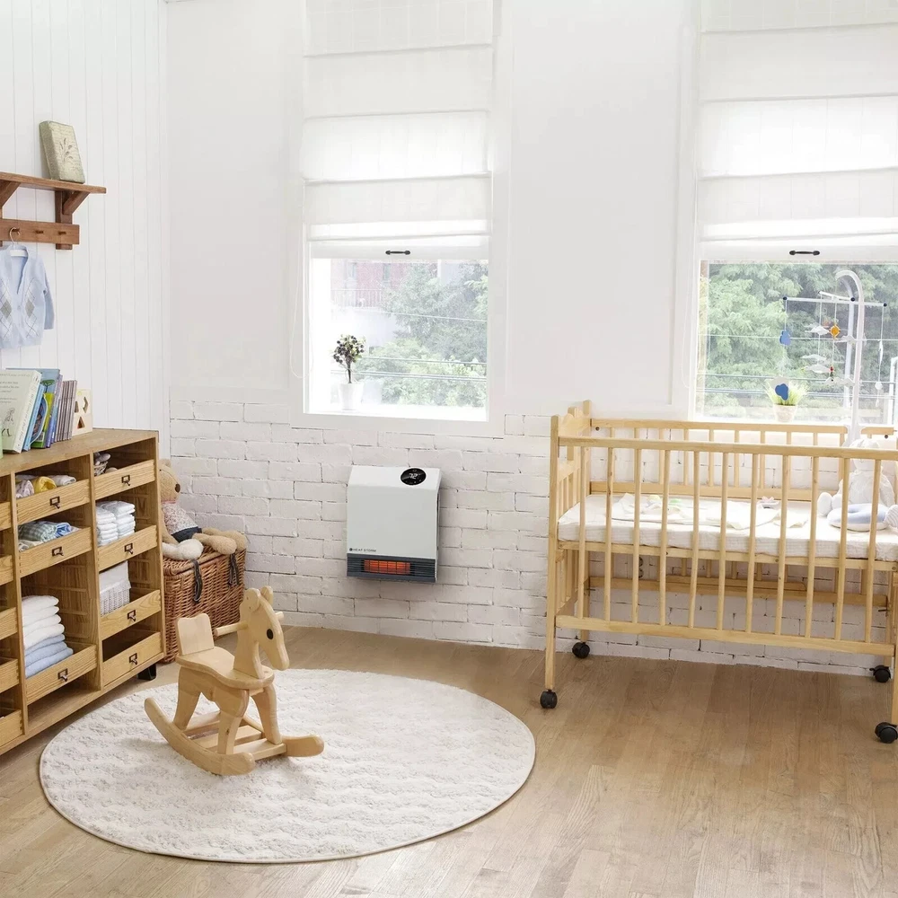 The Heat Storm Deluxe Wall Unit is a great solution for any bedroom or small room where there is not much floor space. At 1,000-Watt this heater will easily heat up your room, but you will not have issues tripping your breaker if you want to run other electronics. This heater is safe to touch, even on the grill, making an excellent choice for anyone. This unit has two power modes, one uses the full 1,000-Watt, while the second mode uses only 500-Watt. Each unit contains our Patented Heat Exchanger with HMS Technology that allows maximum heat from the infrared quartz bulbs without any heat loss from the unit. Highlights Safe to the touch grill, 1000-Watt of power and 3400 BTUs means you can heat up to 500 sq. ft. with supplemental heating Space saving wall mount design means you don't lose floor space, perfect for bedrooms, kitchens, offices and more 1000-Watt Built in thermostat with Wi-Fi capabilities and led display shows you what the ambient temperature is and helps regulate the temperature efficiently, included remote control allows you to control the temperature with ease