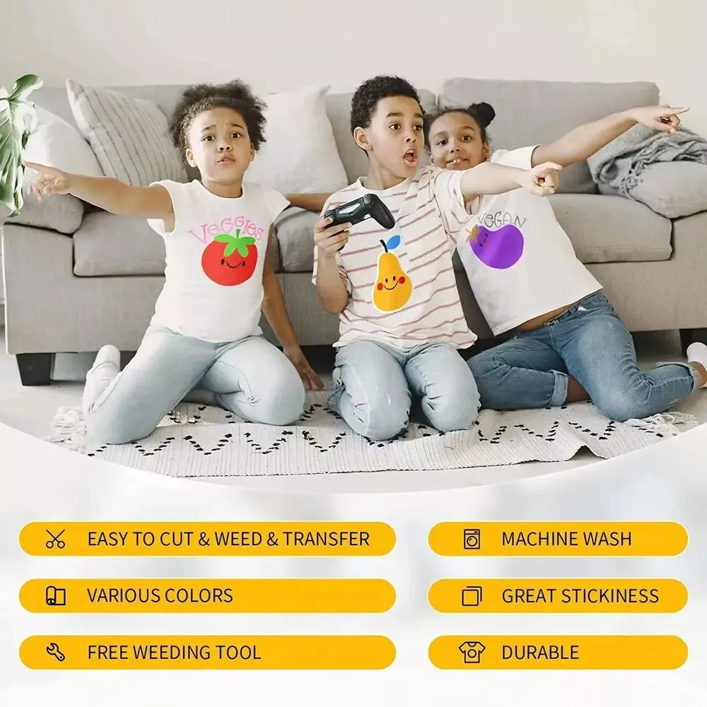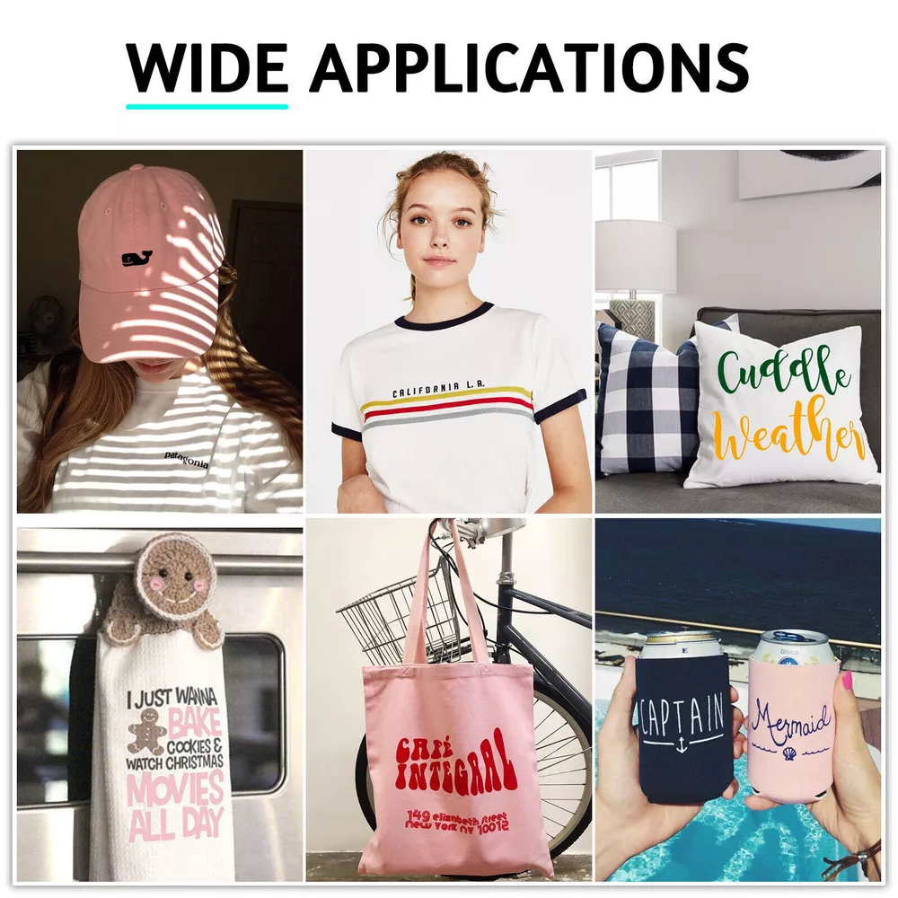 About this item: π― HIGH QUALITY HTV ROLLS π―: HTV heat transfer vinyl bundle is made of quality PU material, thinner but durable, softer and more comfortable. Iron on vinyl rolls have good elasticity and won't broken when stretching. Meanwhile, our heat transfer vinyl rolls bundle has no bubbles during ironing, making your designs perfect. PU material also makes our HTV heat transfer vinyl rolls more safe and eco-friendly, which is very suitable for baby wear. β EASY TO CUT & WEED β: Heat transfer vinyl rolls bundle has excellent cutting features for it's thin and smooth. HTV vinyl bundle is compatible with many kinds of cutters. Our HTV heat transfer vinyl bundle rolls cuts and weeds smoothly, easily and correctly, even with complex and tiny design. Use an iron or heat press to readily transfer your design to the fabrics with proper temperature. Your time is greatly saved. Please note that our vinyl heat transfer is COLD peel. π GREAT STICKINESS & MACHINE WASHABLE π: Ironing with the correct temperature and pressure, HTV vinyl will have superior stickiness. HTV heat transfer vinyl bundle will perfectly adheres on fabrics, is not easy to peel around the edge. Iron on vinyl for cricut is machine washable, it won't crack, peel or fade in repeated washing. Please wait for 24 hours before first washing. π WIDE APPLICATON π: Our HTV is very suitable for cotton, canvas, polyester and cotton blended fabrics. You can transfer it to T-shirts, shirts, caps, canvas shoes, pillows, aprons, handbags, etc. Iron on vinyl rolls are great choices for Halloween, Christmas and other festivals and anniversaries, making a memorable gift for your lover or families on your own. Let's color our life with our HTV heat transfer vinyl bundle! π VIBRANT COLORS π: Heat transfer vinyl rolls have 3 and 5 popular colors: red, green, yellow, black and white. There is no more difficulty in choosing colors. You can get six various colors of small size HTV rolls at the same time. Different colors of HTV bundle can be combined to enrich your design, making up colorful and vivid patterns. How to Use: β Create your design β‘ Cut with the gloss side facing DOWN and the duller back of the HTV vinyl facing up β’ Weed away the excess vinyl, leaving your design on the carrier sheet β£ Heat press at 160Β°C for 5-10 seconds and COLD peel. If you use a home iron, press it with firm pressure β€ Peel the carrier sheet cold, if areas of design lift after application, do step 4 aga