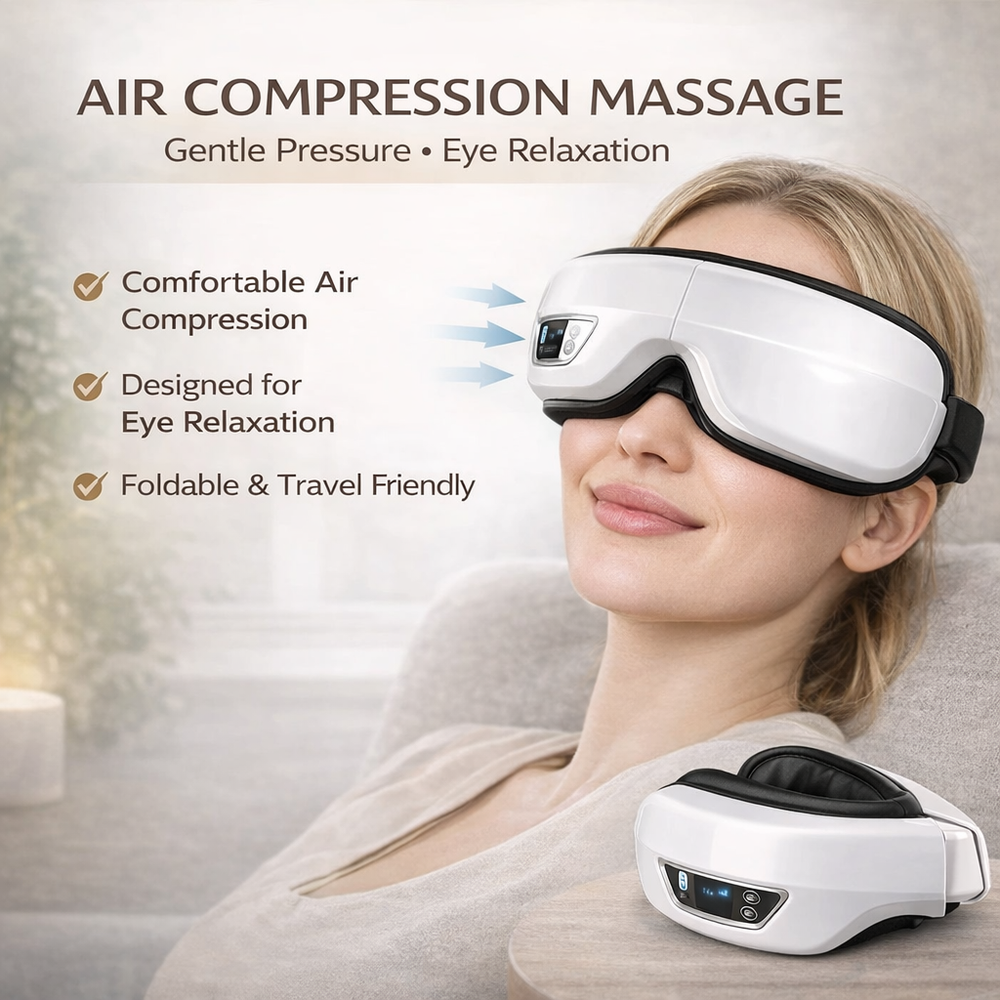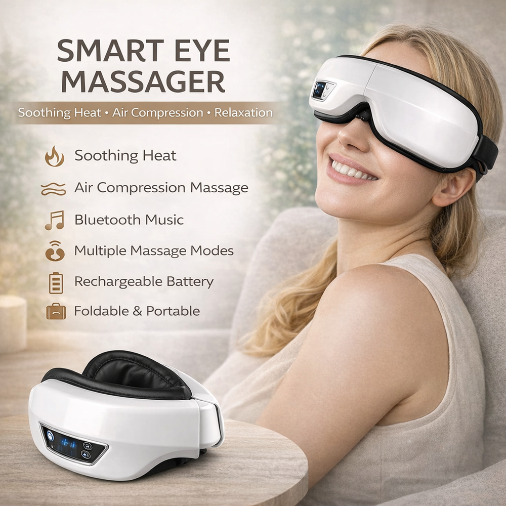 🌿 Relax, Recharge & Care for Your Eyes Turn your daily routine into a calming self-care moment with this soothing Heated Eye Massager. Designed to help you relax after long hours of screen time, reading, or work, this wellness eye mask combines gentle air compression, relaxing heat, and vibration therapy to help you unwind and give your eyes a well-deserved break. Perfect for your evening wind-down routine, meditation time, or mid-day reset . Lightweight and foldable, it’s ideal for home, office, or travel . ✨ Wellness Benefits ✔ Helps relax tired eyes after long screen use ✔ Supports a calming self-care routine ✔ Gentle warmth helps promote relaxation ✔ Ideal for meditation, rest, and evening relaxation ✔ A simple way to bring spa-like comfort into your day Create a peaceful moment for yourself — anytime. 💆♀️ Key Features • Intelligent air compression massage for eye relaxation • Soothing heat function for comfort and relaxation • Gentle vibration modes for added relief • Built-in Bluetooth music connection • Adjustable elastic headband for comfortable fit • 15-minute smart auto shut-off for safety • USB rechargeable battery 🌙 Perfect For ✨ Daily relaxation routine ✨ Screen fatigue relief ✨ Meditation or rest time ✨ Travel relaxation ✨ Home wellness routine ✨ A thoughtful self-care gift 📦 What’s Included ✔ 1 × Heated Eye Massager ✔ 1 × USB Charging Cable ✔ 1 × Storage Pouch ✔ 1 × User Manual Everything you need to start relaxing right away. 🚚 Fast & Reliable Shipping ✔ Ships within 1 business day ✔ Orders packed with care ✔ Ships Monday–Friday ✔ Smoke-free & pet-free environment ⭐ Buy With Confidence ✅ 100% Positive Seller Feedback 💬 Fast response to questions ❤️ Customer satisfaction is our priority If you have any questions, feel free to message us — we’re happy to help!