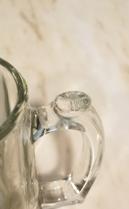 This beer mug is a great addition to any glassware collection. It is made of clear glass and is 6 inches tall, with a thumbprint handle that adds a touch of elegance. Diameter 2.75 inches. The mug is heavy, weighing in at 1 pound 13 ounces, making it a solid and sturdy choice for your beer needs. Perfect for family and friends gatherings, this mug is suitable for all occasions. The glassware type is a mug and it also features a handle for easy grip. This item is a great gift idea for any adult in your life who appreciates good beer. You Will Receive The Item(s) Pictured. We Do COMBINE SHIPPING So Take A Look At Our Other Items. If You Would Like To Take Advantage Of The COMBINED SHIPPING Please Wait For Invoice Before Payment. If You Have Any Questions We Will Be Happy To Answer Them.