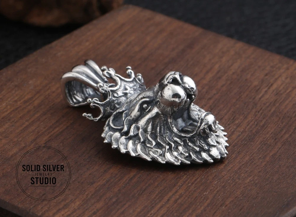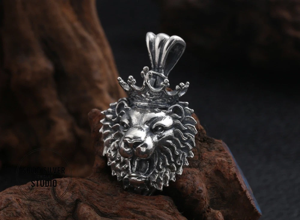 Sterling Silver Crowned Lion King Head Pendant Rule your domain with this incredible, heavyweight crowned lion pendant. A bold statement of power, courage, and royalty, masterfully crafted in solid silver. This is a truly substantia l piece of silver artistry. Forged from solid 925 sterling silver, this pendant features a fierce, roaring lion's head, complete with a full, intricate mane and a royal crown. The entire piece has a deep, oxidized finish that gives it an impressive, antiqued look and makes every single detail of the lion's fur and expression leap out. This is a pendant designed to be noticed. Key Features & Specifications ✔️ Solid 925 Sterling Silver: A genuine, stamped S925 piece built for a lifetime of wear. ✔️ King of the Jungle Design: A powerful, roaring lion head wearing a royal crown. ✔️ Extremely Heavy & Substantial: Weighs an impressive 15.9 grams (approx. 0.56 oz). ✔️ Large Statement Size: Measures approximately 1.38 inches tall by 1.1 inches wide (35mm x 28mm). ✔️ Extra-Large Bail: The integrated 7mm bail opening is designed to fit heavy or thick chains, like Franco or rope chains. ✔️ Incredible Detail: From the individual strands of the mane to the roaring expression, the craftsmanship is top-notch. Condition Brand New, Excellent Condition. This pendant is new and has never been worn. The darker, antiqued finish is an intentional part of the vintage "Thai Silver" aesthetic, designed to enhance the rich details of the sculpture. What's Included (1) Solid 925 Sterling Silver Crowned Lion Head Pendant Please Note: The chain shown in photos is for demonstration purposes only and is NOT included. FREE SHIPPING! Your item will be packed with care and shipped out promptly. 30-DAY HASSLE-FREE RETURNS Buy with confidence! If you're not 100% satisfied, simply send it back for a full refund. The perfect gift for a Leo, a leader, or anyone who embodies the spirit of the lion. Click 'Buy It Now' to claim this masterpiece!