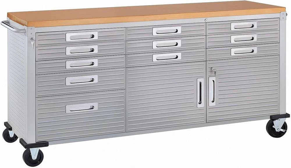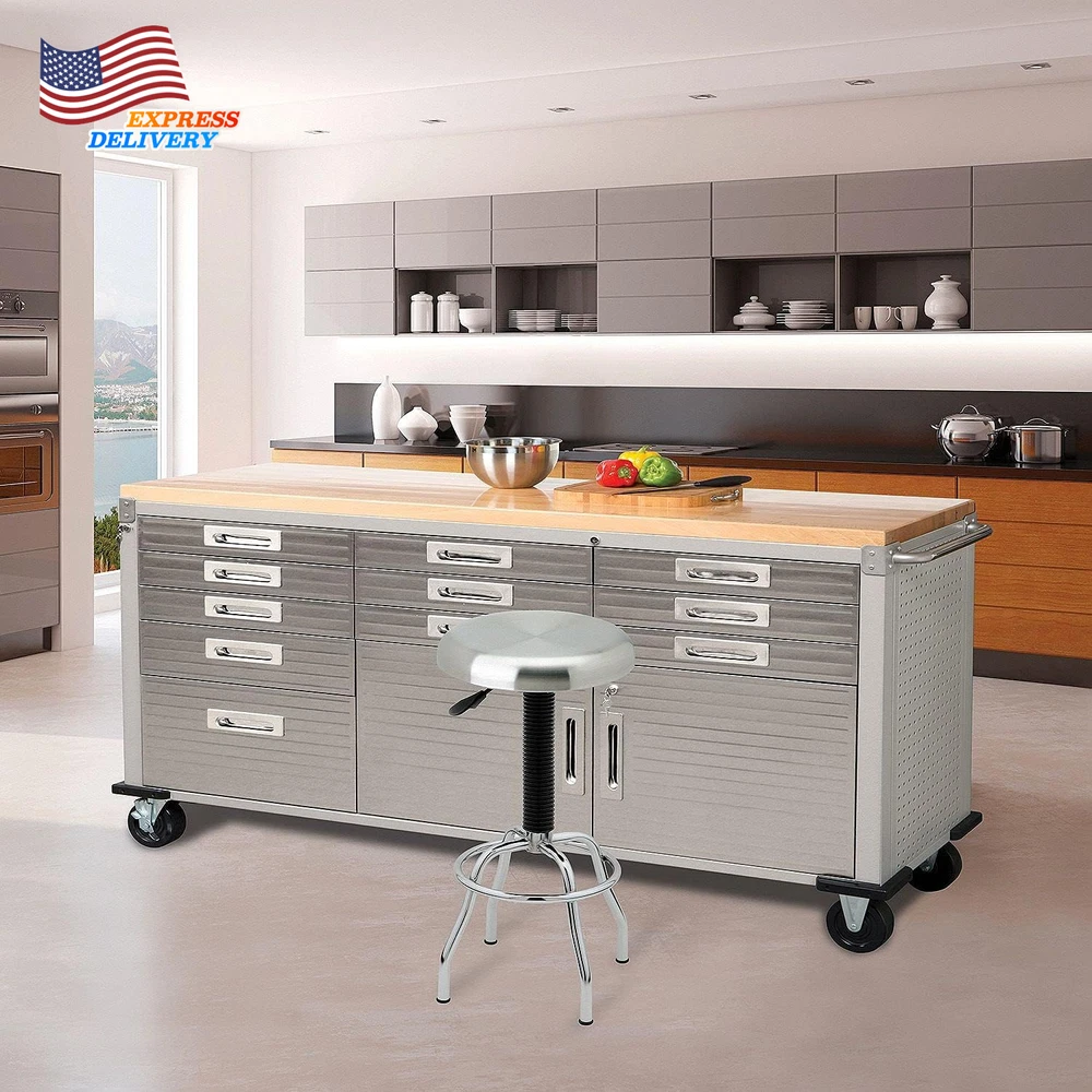 Store New Arrivals Add to Favorite View Feedback Contact 11 Drawer Heavy Duty Rolling Cabinet Workbench Table w/Solid Wood Top for Garage Description Item model number UHD20262 Item Weight 265 Pounds Product Dimensions 20"D x 77"W x 37.5"H Assembly Required Yes Color Granite Material Wood, Stainless Steel Load Capacity 500 pound Global Trade Identification Number 00017641202625 Base Type Casters Frame Material Solid Wood,Wood Finish Type Wood,Steel Maximum Height 37.5 Inches Size 11-Drawer Assembled Dimensions: 77" W x 20" D x 37.5" H Overall dimensions with push bars: 77" W x 20" D x 37.5" H (72" W w/o push bars) Solid polyurethane-coated wood top measures 1.5" thick All-steel construction provides industrial-strength storage Four 5" heavy-duty wheels (2 locking) Upgrade your workspace with Seville Classics UltraHD® 2-Door Lockable Rolling Cabinet Workbench. This heavy-duty steel workbench is the perfect centerpiece for garages, workshops, classrooms, and warehouses. Workbench features solid wood top measuring 1.5 inches thick for durable and smooth workspace. Store your things in 11 gliding ball-bearing drawers: 9 small (3.5" H), 1 medium (5.6" H), and 1 large (11.3" H). Two-door cabinet features a large storage compartment with single height-adjustable shelf for bulkier items. Store up to 30 lbs. per drawer and up to 500 lbs. total evenly distributed throughout the unit. Workbench body is constructed from commercial-grade steel with pegboard sides. ABOUT US We offer the best prices around on high quality products. Our E-store includes media such as books, movies, music and games while offering electronics, toys, sporting apparel, clothing, tools, general home, garden items and more. SHIPPING We are always working hard to ensure your package arrives as soon as possible. Please understand that some factors like weather, high postal traffic, and the performance of shipping companies are outside of our control. We offer free shipping to the lower 48 states and ship within 2 business days of payment, usually sooner. We do not accept P.O. Boxes. Please provide a physical address. For shipping outside of the continental USA, we only use eBay's Global Shipping Program.The item is shipped to KY and then sent to the rest of the world. International customers are responsible for all duties and taxes. Continue to check out in order to calculate costs for shipping the item to your country. Messages regarding eBay's Global Shipping Program MUST be directed at eBay EXCLUSIVELY. RETURNS We offer a 30-Day Return Policy on items which you are not completely satisfied with. You have the option for a full-refund or an exchange of the item. No returns are available on items shipped outside of the USA. PAYMENT We accept PayPal. CONTACT US This page content is yet to come Please ad us to your favorite seller and visit again later Thank You CUSTOMER SATISFACTION We try our very best to make sure every customer is completely satisfied. If there's a problem, message us! We're happy to help. WE ACCEPT Copyright © 2021 AutoDS. | All Rights Reserved