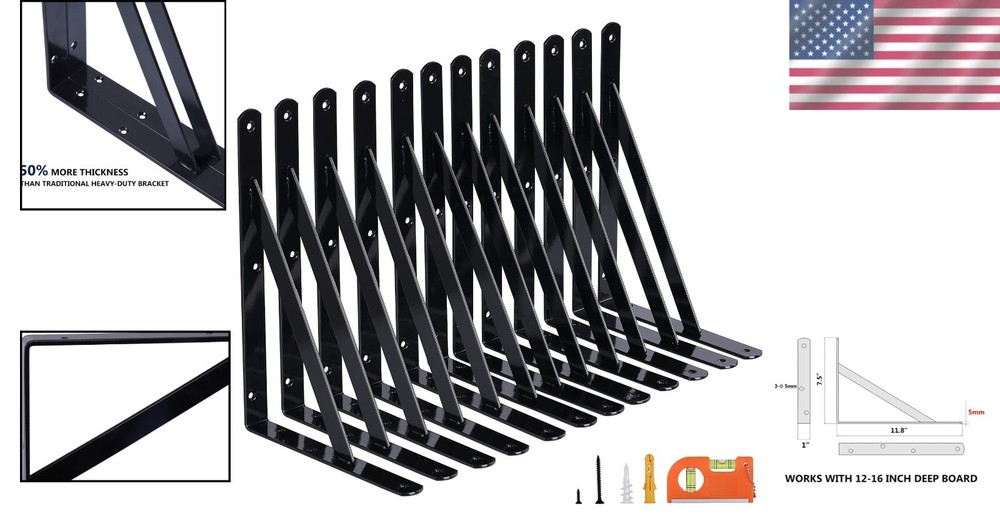 Heavy Duty 12 Inch Shelf Brackets for Easy Vertical Installation - 12 Pack Set ‹ › ‹ › ‹ › ‹ › ‹ › ‹ › ‹ › ‹ › Heavy Duty 12 Inch Shelf Brackets Set of 12 Pack - Perfect for Easy Vertical Installation Product Specifications: Measurements: 11.8 x 7.5 inches, designed ideally for 12 to 16-inch deep shelving boards. Constructed from heavy-duty, powder-coated Q235 steel with a tensile strength of a minimum of 60,000 psi. Supports an impressive 800 lbs. maximum weight capacity per pair when mounted into 16-inch wall stud centers. Features off-center drilling for effortless vertical installation without the need to adjust your drilling posture. Includes levels, screws, and anchors - just grab your screwdriver and start your project. Why Choose Our Heavy Duty Shelf Brackets? Elevate your space with our Heavy Duty 12 Inch Shelf Brackets, specifically designed for durability, function, and effortless installation. Perfectly paired with 12 to 16-inch deep shelving boards, these brackets provide unparalleled support and stability, accommodating up to 800 lbs. per pair. The robust Q235 steel construction means you can trust in its strength, while the powder-coating not only enhances its aesthetic appeal but also protects against wear and tear. The innovative off-center drilling feature simplifies the installation process, ensuring a smooth setup every time. Whether you’re organizing your home, office, or garage, these brackets are versatile and practical. With included installation essentials, your heavy duty shelving is just a screwdriver away! Don’t compromise on quality – choose our Heavy Duty 12 Inch Shelf Brackets for a reliable and stylish storage solution. Order your set today and redefine your space! Shipping Free & Fast Shipping - We offer free shipping to most of the USA with a normal delivery time of 3-7 days. However, due to the current situation, additional delivery time (up to 3 weeks) may be required for some items. Alternative Carriers - We may use alternative carriers (e.g. USPS, FedEx, UPS, etc.) to ensure your package arrives safely and on time. Due to the use of multiple carriers, we are unable to provide a tracking number automatically. Handling Time - Orders are processed and shipped within 1-2 business days of receiving cleared payment. Shipping Restrictions - Shipping to Alaska, Hawaii, Puerto Rico, Guam, and other US territories may incur shipping charges or delivery restrictions. Please contact us before ordering, or your order can be refunded/cancelled. State Restrictions - There may be restrictions based on your state of purchase. For example, certain items may not be shipped to California due to state regulations. Contact for Tracking Updates - If you require tracking updates or have any concerns about the delivery of your order, please feel free to contact us, and we will be happy to assist you. Return 30-Day Hassle-Free Returns - We want you to be completely satisfied with your purchase. If you are not, you can return the item within 30 days of receiving it for a full refund or exchange. Easy Return Process - To start a return, simply contact us and we will provide you with a prepaid return shipping label and detailed instructions. Restocking Fee - There are no restocking fees for returns. However, the buyer is responsible for return shipping costs if the return is not due to a seller's error. Refund Processing Time - Refunds will be processed within 5 business days of receiving the returned item in its original condition. Payment We accept all major credit cards, PayPal, and Apple Pay for your convenience. Your payment information is secure and encrypted to ensure a safe and seamless transaction. Please complete your payment within 3 days of purchase to avoid any delays in shipping. Feedback Your feedback is extremely important to us. We strive to provide the best products and customer service possible. If you are satisfied with your purchase, please take a moment to leave us a positive review. If you have any concerns or issues with your order, please contact us before leaving negative feedback. We are committed to resolving any problems and ensuring your satisfaction. Contact Us If you have any questions or concerns, please feel free to reach out to our customer support team. You can contact us through the eBay messaging system. We are available Monday to Friday, 9:00 am to 5:00 pm EST, and we will do our best to respond to your inquiry within 24 hours. Buy it now and enjoy a pleasant shopping experience! UPC: Not Set Unit Quantity: 12 Set Includes: Shelf Brackets,Anchors,Screws,Level Material: Steel,Q235 Steel Mounting: Wall Mounted Features: Heavy Duty,Large Capacity,Off-Center Drilling Room: Garage Department: Adults Theme: Not Set Year Manufactured: Not Set Required Tools: Screwdriver Brand: Unbranded Item Height: Shelf Brackets Item Length: Shelf Brackets Item Width: Shelf Brackets Number of Shelves: 1 Type: Shelf Brackets Pattern: Not Set Style: Industrial Color: Black Number of Items in Set: 12 Door Mechanism: Not Set Maximum Weight Capacity: 800 lbs Item Weight: 18.28 lb Product Line: Not Set Maximum Weight per Shelf: 400 lbs MPN: Not Set Model: Not Set Shape: Rectangle Finish: Powder Coated Wood Tone: Not Set Distance from Floor to Bottom: 12 in Suitable For: Shelving Boards Country/Region of Manufacture: Not Set Maximum Length: Not Set Minimum Height: Not Set Maximum Width: Not Set Minimum Length: Not Set Minimum Width: Not Set Maximum Height: Not Set Packaging: Flat Pack Time Period Manufactured: Not Set Manufacturer Warranty: Not Set Unit Type: lb Assembly Required: Not Set Additional Parts Required: Not Set Personalized: Not Set Original/Reproduction: Not Set