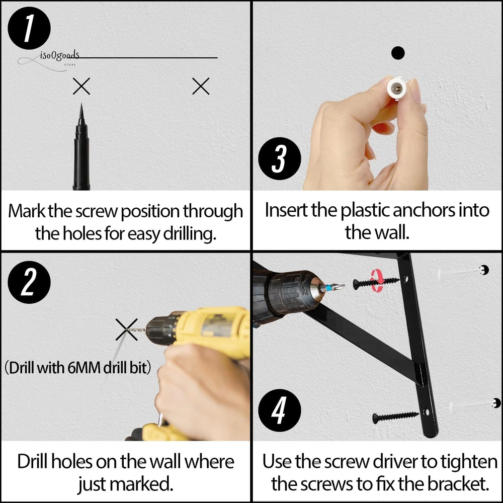 Upgrade Your DIY Projects with Heavy Duty Shelf Brackets! Package Includes: 12 x Brackets 24 x Long Screws 24 x Wall Anchors 36 x Short Screws Product Details: Size: 12" x 8" (L 11.8" x H 7.5" x W 0.6") Color: Black Coated Finish Thickness: 0.08" Weight Capacity: 110lbs per pair Supports Shelves: 12 inches to 16 inches deep Features: Triangle Design: Built with a 90-degree triangular structure to hold heavy items securely without bending. Premium Quality: Made from high-quality steel with a black powder-coating finish, ensuring durability and resistance to water and corrosion. Easy Installation: Pre-drilled fixing holes on each side and included screws make installation a breeze. Perfect for DIY floating shelving in your home, office, garage, kitchen, and more! With this rewritten description, your listing will be more engaging and likely to attract potential buyers on eBay. Plus, the emphasis on key features and benefits should help improve your search ranking!