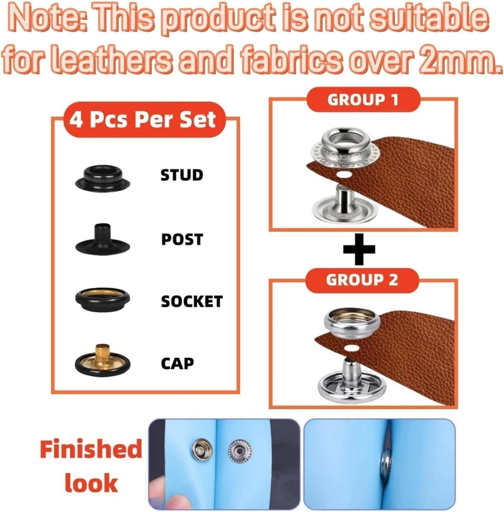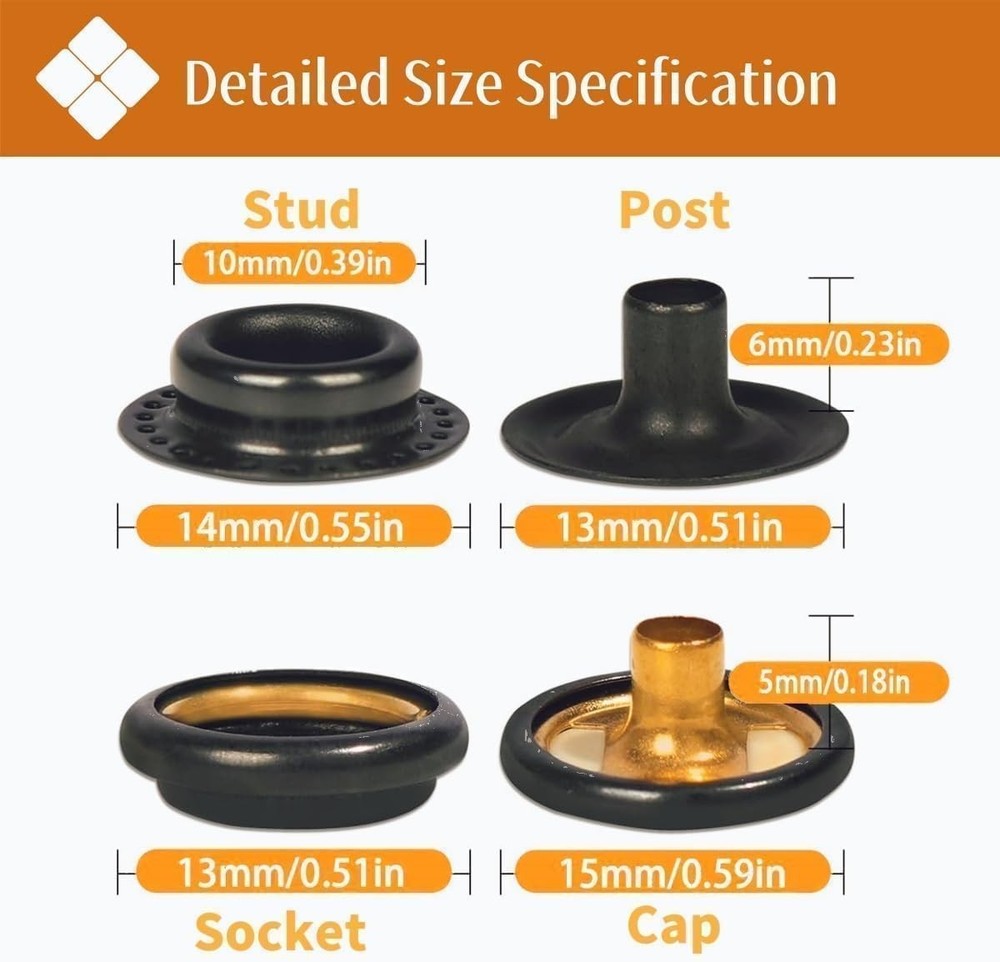 Heavy Duty Snap Fastener Kit for Marine Canvas Upholstery Repair
