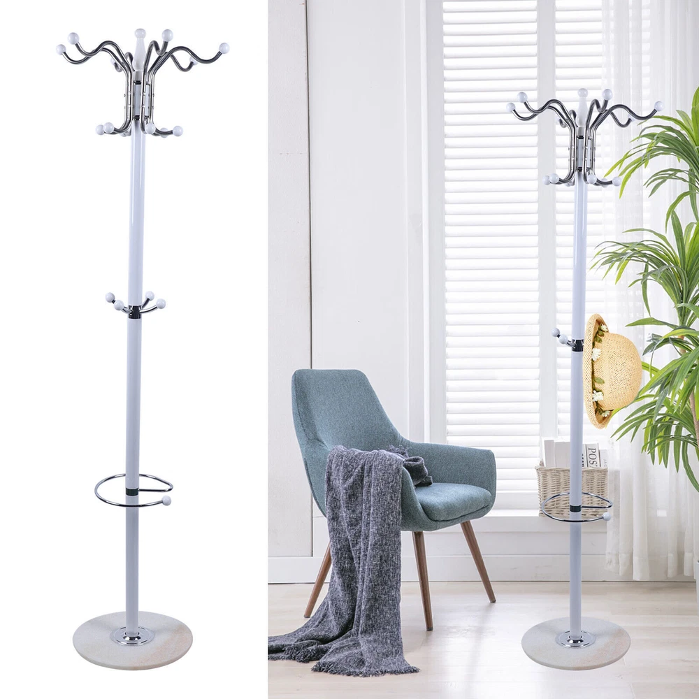 Specifications: Color: White/ Black Material: Marble + Metal Assembly: Required Product Size: 38cm*170cm/15"*67" (Diameter*height) Product Weight: 18 lbs Bearing capacity: 44 lbs Package Contents: 1 x Coat Rack Heavy Duty Coat Rack Hat Bag Stand Tree Clothes Hanger Holder 16-Hook Organizer Description 【Modern & Classic】An elegant construction and finish, our coat stand is suitable for your dorm room, apartment, house, office, and any other rooms. And it will match your surroundings, furniture, and style seamlessly. 【High Quality】Constructed with metal tube frame and polished marble base, this coat stand is more sturdy and durable, which will last years to use. 【Multifunctional Design】With 4 levels and 16 Hooks, this coat stand not only can storage your coats and jackets, but also your handbags, scarves, and umbrellas. 【Clothing Protection】Equipped with ball tipped hooks, our coat stand will protect your clothes from damage. 【Easy Handling】This coat stand is very easy to clean, and you can just wipe it with damp cloth. And the compact shape makes it convenient for storage. Specifications: Color: White/ Black Material: Marble + Metal Assembly: Required Product Size: 38cm*170cm/15"*67" (Diameter*height) Product Weight: 18 lbs Bearing capacity: 44 lbs Package Contents: 1 x Coat Rack Payment Delivery details Terms of sales About us Contact us Payment We accept ebay payment 。 Fees such as import duties, taxes are not included in the item price or shipping costs. These charges are the buyer's responsibility. Delivery details Shipping: 2-9 working days to: USA Terms of sales We maintain high standards of excellence and strive for hundred percent customer satisfaction. Feedback is very important to us. We hope that you contact us immediately before you give neutral or negative feedback, so that we can address your concerns. It is impossible to address issues if we do not know about them! About us Your satis faction is our ultimate goal. We work hard to earn your trust and future business. Our certified technicians have tested each item before shipping. The unit comes with 1 year limited warranty on all manufacturing defects. a) If you receive a defective item, you may return it or ask for a discount. Please contact us within 14 days after you receive the package. b) What you returned must be intact and in its original packaging as re? u. Customer is responsible for shipping costs of the returned item. c) We will cover the cost of shipping back t with the shipping rate indicated in the registration page. We will send you a new unit or refund the full payment you paid. Thank you. Contact us Business Hour Business Hour: Monday To Friday: 8:30 AM to 5:00 PM (Beijing China time) Due to time zones, our reply to your questions may not be immediately. But within above working time, we will reply your email within 24 hours. If it's non-workdays, please kindly be patient and wait till Monday. Please contact us with ebay message. Please feel free to contact us if you have any questions. Monday To Friday: 8:30 AM to 5:00 PM (Beijing China time) Due to time zones, our reply to your questions may not be immediately. But within above working time, we will reply your email within 24 hours. If it's non-workdays, please kindly be patient and wait till Monday. Please contact us with ebay message. Please feel free to contact us if you have any questions.