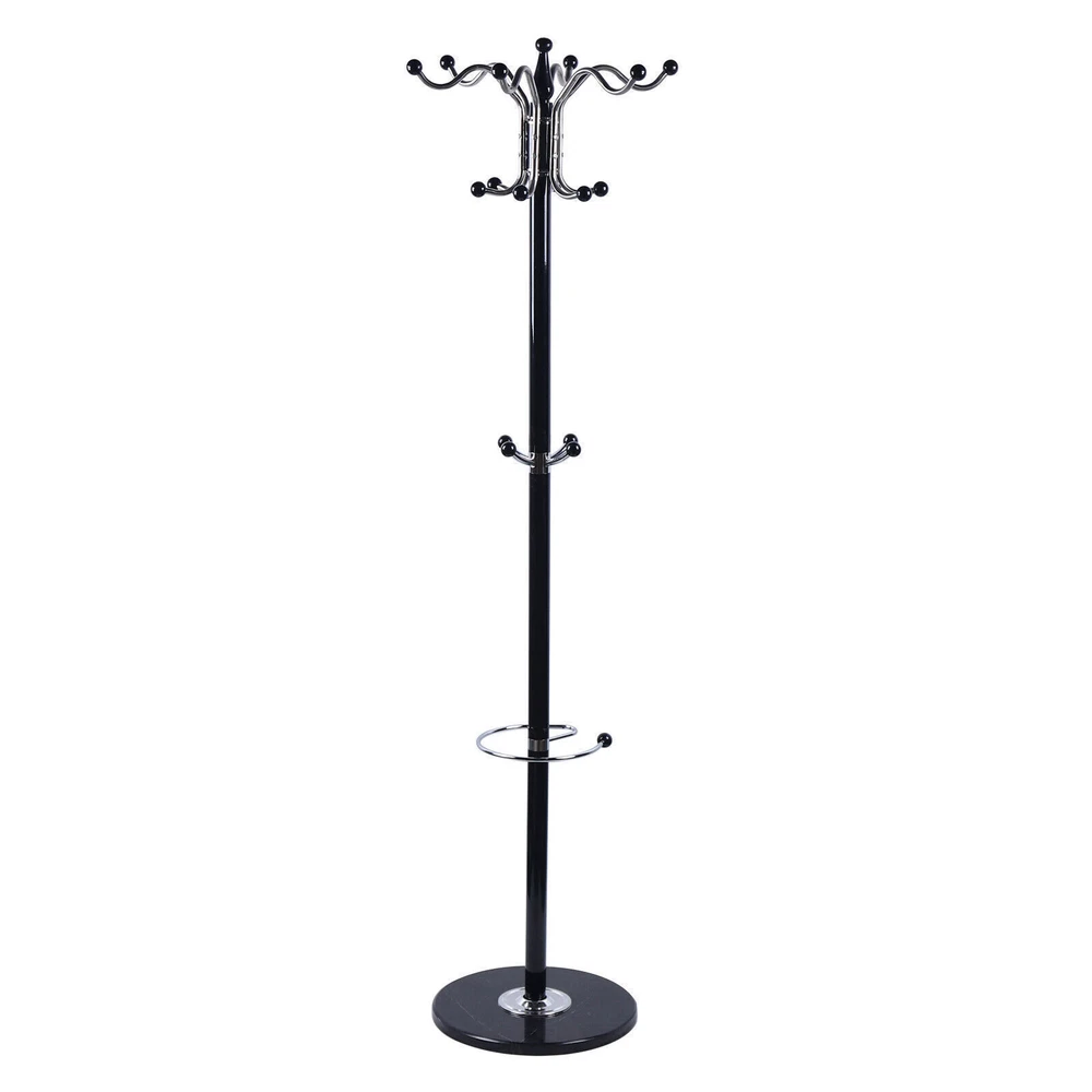 16-Hook Metal Coat Rack with Umbrella Holder & Hat Tree Stand - Made in USA