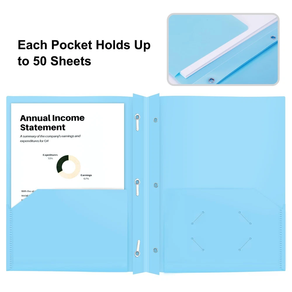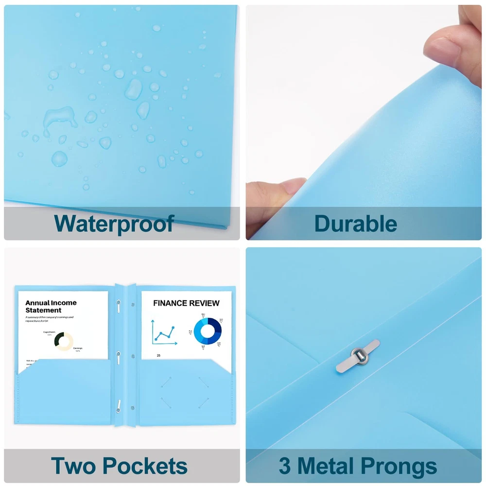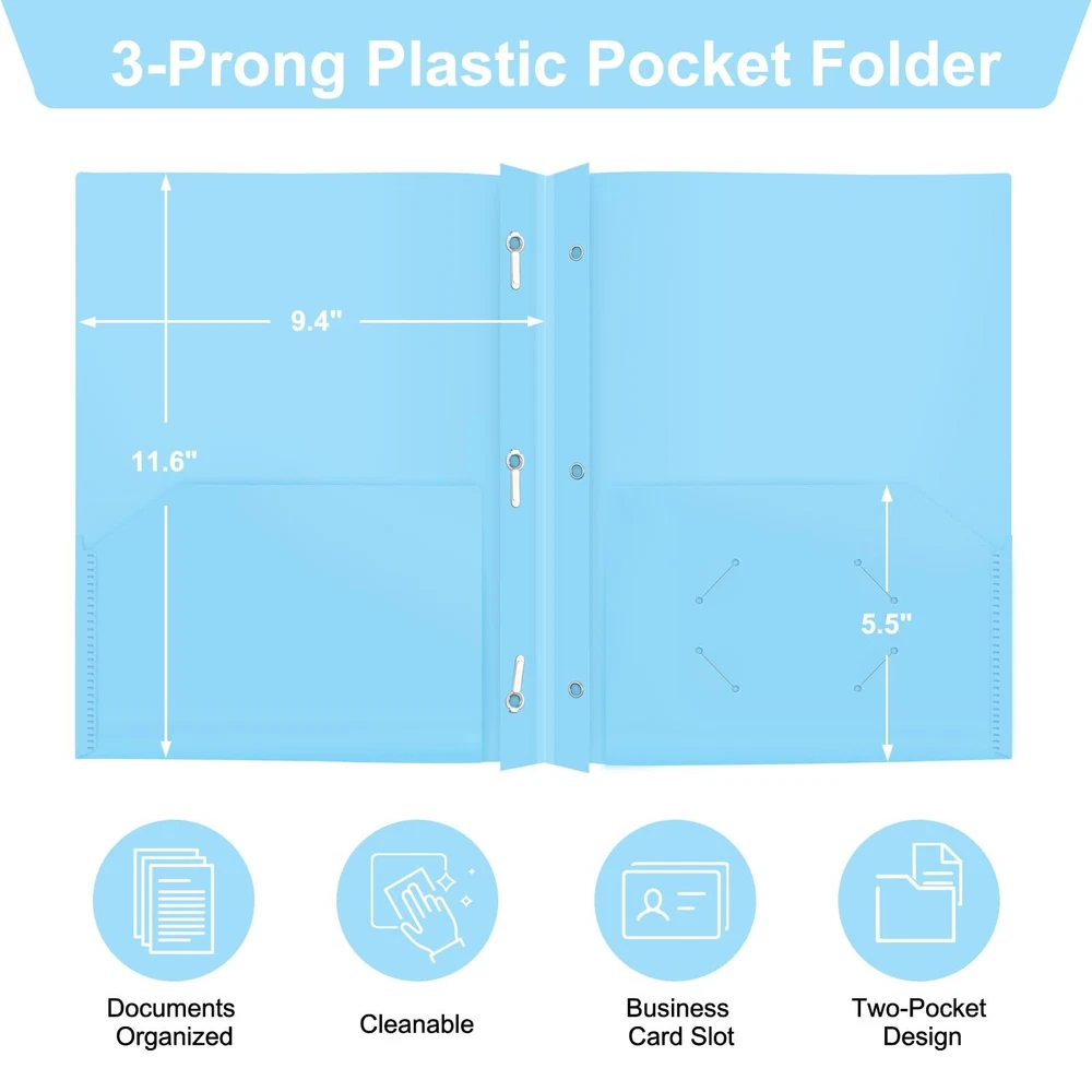 Welcome to our stores! We guarantee you will be satisfied. Heavy Duty 2-Pocket Folders with Brads, Pastel Color, 12-Pack, Durable Plastic Folder with 3-Prong Fasteners, Holds US Letter Size Paper, for School, Home and Office (Light Blue) Product Overview Key Features Durable poly folder with size 9.4 x 11.6 inches, fit 8.5 x 11 inches sheet paper. 2 pockets provide extra 100+ sheet capacity each. Heavyweight plastic folders made with 100% pure poly, prevents accidental spill, tear or fold on mission critical documents and presentation. 3-prong folder with robust 3 prong fastener enables punched documented to be secured inside the folder effortlessly and efficiently. Reinforced border to increase the usability, durability, and life-span of the portfolio, and all plastic folders with one bussiness card solt. Light blue poly folders allows user to easily differentiate function, purpose or category. Perfectly use for office file organizer, students' courses sorting. Payment Information ■ Secure payments through eBay. ■ We accept PayPal and all major credit cards. ■ Immediate payment required upon purchase. ■ For any payment issues, please contact our support team. Shipping Information ■ Orders are shipped to the address provided during checkout. Please verify your address. ■ We process orders within 1 business day (excluding weekends and holidays). ■ Standard delivery time is 3-5 business days. ■ We use trusted carriers like UPS, FedEx, and USPS. ■ Shipping is only available within the contiguous United States. No shipping to Alaska, Hawaii, Puerto Rico, or PO Boxes. ■ If there are any shipping delays, please contact us for support. Return Policy ■ We offer a 30-day return policy. ■ If you are not satisfied with your purchase, you can return it within 30 days for a full refund. ■ Please contact us to obtain the return address before sending back any items. ■ Items must be returned in their original condition and packaging.