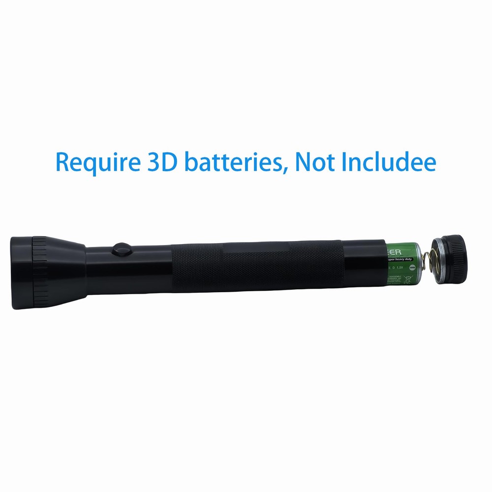 Single Mode:Just only single mode operation,easy to use。Simply turn it on and enjoy a powerful beam of light. No complicated settings or modes required. BRIGHT:Our heavy-duty 3 D LED flashlight provides an impressive 500 lumens of bright light.Whether you are outdoors or experiencing a power outage at home, this flashlight will be your reliable companion. Long Endurance:3 PCS high quality D cell batteries can providing Max 10 hours of lighting time.(Battery not included) Sturdy: Aluminum alloy case is very sturdy, drop-proof and waterproof TRUSTWORTHY: This heavy duty flashlight is built to last with our commitment to quality. We offer a satisfaction to ensure that you can count on the performance and durability of this important tool.