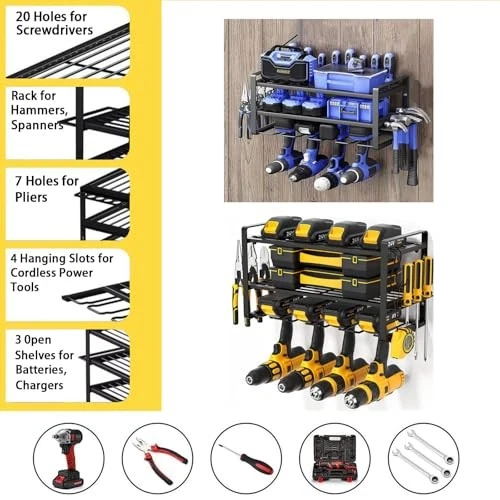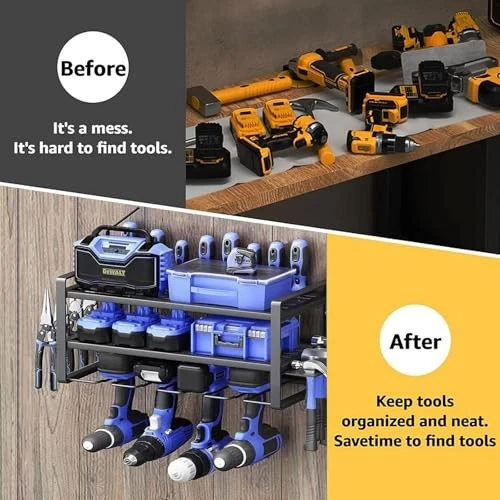 Return Policy Fast Delivery Trusted seller Power Tool Organizer Wall Mount, Heavy Duty 3 Layer Cordless Tool Organizer 4 Drill Organizer Wall Mount Black Shelf Power Tool Organizer Garage Product Description Organization and Optimize Space: This tools organizer utilizes wasted wall space to organize and store your power tools and handheld tools, making your work more efficient and convenient, allowing you to see your commonly used tools at a glance and avoid searching for them. Heavy Duty and Large Capacidad: The 3-tiered power tool organizer design can accommodate more items, with the lower slot designed to hold 4 drill holder or the hammer, while the upper shelf can store replacement power supplies or other Tools you need. Easy Installation and Firm: Our power tool organizer wall mountrequires no assembly. The set includes a marking ruler, a screw set, and installation tools. can hold up 40 pounds for the top shelf and 80 pounds for the tool slots. Curved and Coated Design: Our power tool organizer wall mount not only has a curved anti slip arc in the slot section, but also has a coating on the entire surface of the storage rack to protect your items from rust, and t will be no scratches when moving up and down. Product Guarantee: garage organizer and tool storage rack. If you have any usage or other questions, please feel free to contact us at any time and we will provide you with satisfactory answers. Shipping Returns Payment Shipping Shipping is FREE to all addresses other than APO/PO boxes in the lower 48 states. All our stock ships from US-based warehouses. Shipped via USPS or UPS (depending on location and package weight) Unless stated otherwise, all orders will ship within 24-72 hours of your payment being processed. Check our feedback to see the great reviews of FAST shipping we offer. Returns Seller does not accept returns Payment We currently accept payment via eBay managed payments only. Once payment is cleared, we will dispatch your shipment within 1-3 business days. Please refer to the "Shipping" tab for more information regarding shipping speed to your destination.