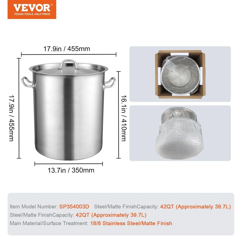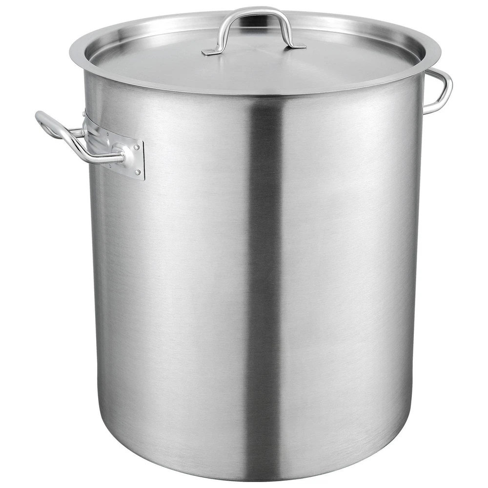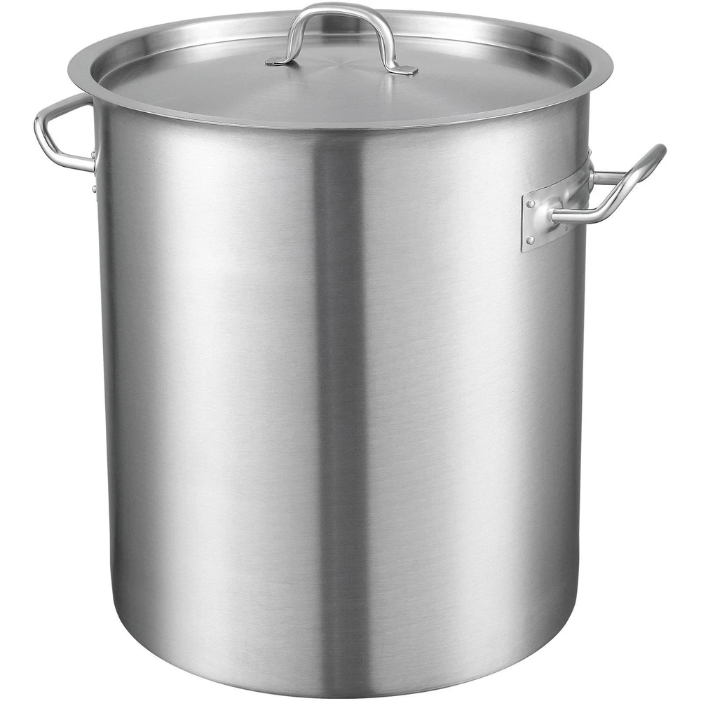 Multipurpose Stainless Steel Stockpot The large-capacity soup pot can accommodate more ingredients at once, saving cooking time. It can also process large foods like turkey and lobsters, ensuring even heating and thorough cooking. Crafted with 18/8 stainless steel, this stockpot is more corrosion-resistant. When heated to high temperatures or while cooking acidic foods, it doesn't release harmful substances, providing better overall stability. The compound base refers to the addition of a magnetic and thermally conductive aluminum sheet to the pot's bottom, making it suitable for induction cook tops. This stainless steel cookware with a compound base improves cooking efficiency and experience. The ergonomic handle on the pot body uses rivet technology. It doesn't produce thermal reactions leading to warping or damage like welding does, offering better overall weight-bearing. Even in situations of repair or replacement, it provides greater flexibility. 1A-grade stacked packaging refers to meeting the highest standards from external packaging inspection (ensuring no watermarks, dirt, damage, etc.) to drop testing (high-frequency vibrations, inclined falls, etc.), ensures the integrity of the product.