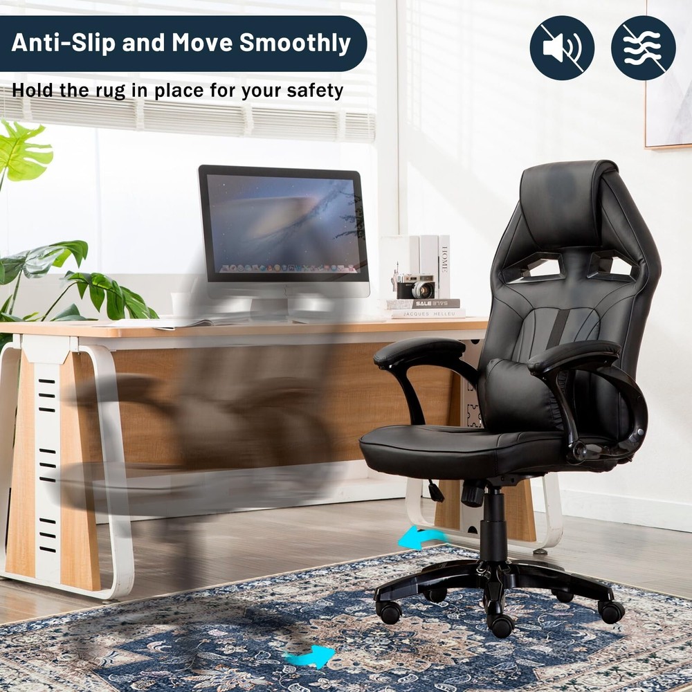 This chair mat is a game-changer for my hardwood floors! The heavy-duty design protects against scratches while the anti-slip base keeps it securely in place. The navy blue color adds a nice touch to my office, and the low-pile surface makes rolling my chair effortless. Perfect size for my workspace!